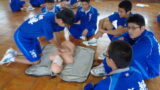 タブレットで動画を確認するとともに、班で話し合い、より実践的な技術を身に付けられるよう取り組みました。