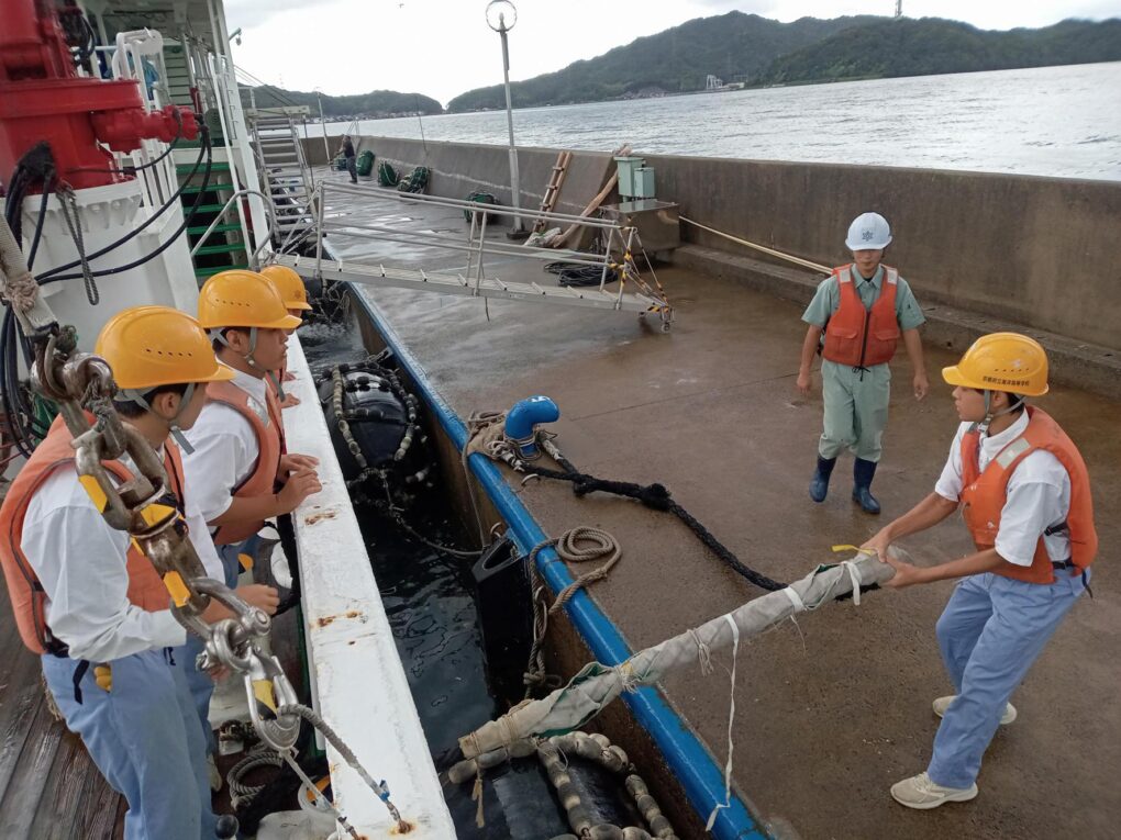 3船 海洋観測実習(みずなぎ) 実習船 2025.10.07 9月19日(金)、航海船舶コース3年生が実習船「みずなぎ」に乗船し、日帰りの海洋観測実習を行いました。 荒天により揺れる船上での観測業務に苦労しましたが、最後までやりきることができました。 Post Views: 44