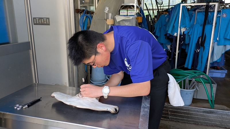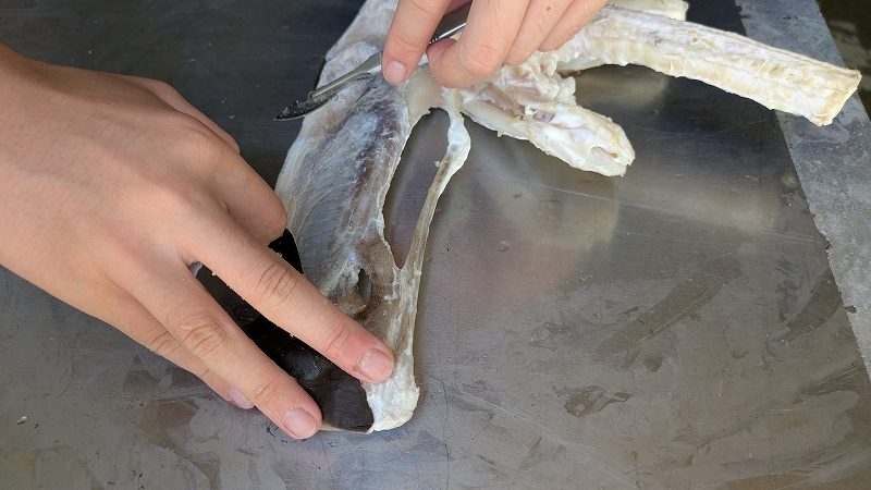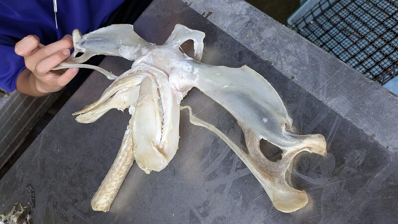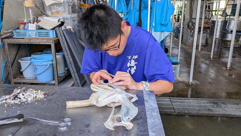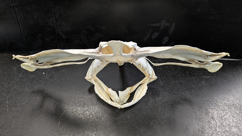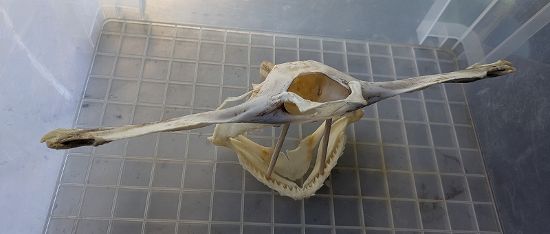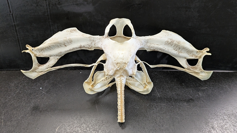シロシュモクザメ頭部骨格標本(マリンバイオ部) マリンバイオ部 2025.09.26 シロシュモクザメの頭部骨格標本をつくりました。HP:シロシュモクザメ(マリンバイオ部)2025年6月 7月 除肉開始 時間をみつけてコツコツと 乾燥中 9月24日(水)撮影 完成 真正面 真上 Post Views: 85