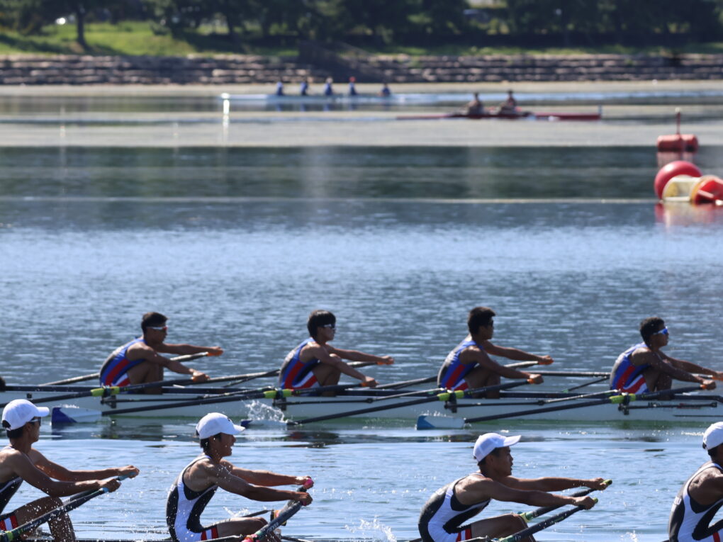 9月6日(土)、第45回京都府高等学校ローイング選手権大会が行われました。1年生にとっては初めての公式大会でした。結果、男子ダブルスカル種目で富室(2年船舶)、東垣(2年科学)が決勝で1着となりました。また、舵手付きクォドルプル種目にて、石田(2年栽培)、金谷(2年科学)、中川(2年船舶)、松井(2年科学)、尾瀬(1年1組)が2着となり、次回大会への切符を手にしました。