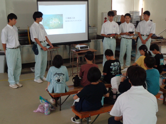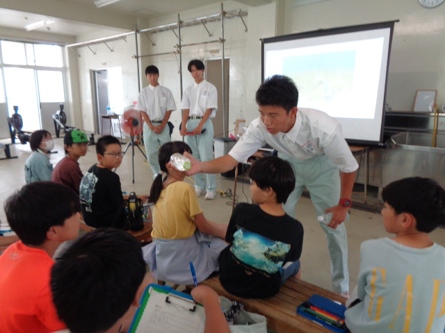 10月3日(金)、栗田小学校4年生11名が来校され、海洋科学科2年生が「海ごみ教室」を担当しました。地元の小学生と一緒に環境学習を体験することで、地元の海や環境問題について学習を深めていただく機会となりました。栗田小学校の皆様、ありがとうございました。