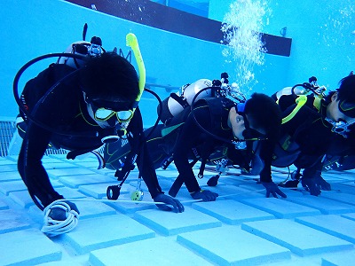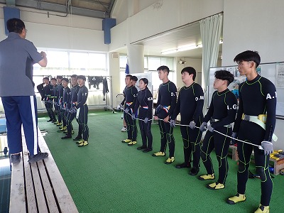 【ダイビング】水中捜索 海洋技術コース 2025.10.07 9月30日(火)海洋技術コース3年生「ダイビング」の様子です。本時は、水中で遺失物を捜索する「水中捜索(ジャックステイ)」を実施しました。 はじめに、水中での動きをイメージして陸上でシミュレーションを行いました。 陸上でのシミュレーションをもとに、プールにて遺失物捜索トレーニングを行いました。 プールでのトレーニング後、実際に海で遺失物捜索を行いました。 透視度が低く捜索に苦労しましたが、無事に遺失物を回収することができました。※遺失物は、実習のため教員が意図的に配置したものです。 Post Views: 74