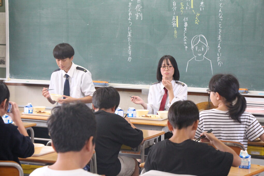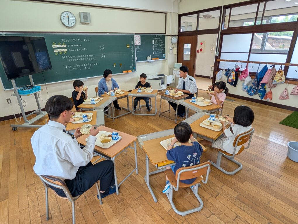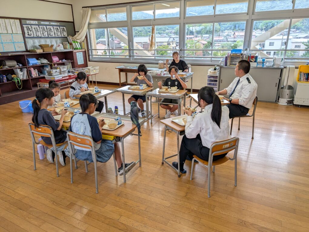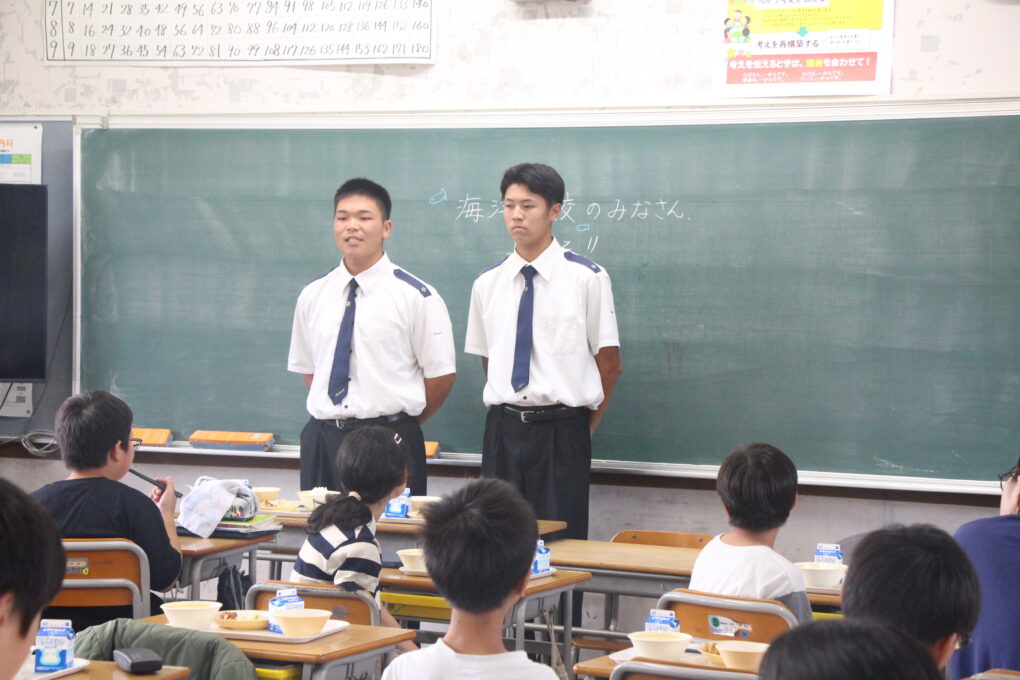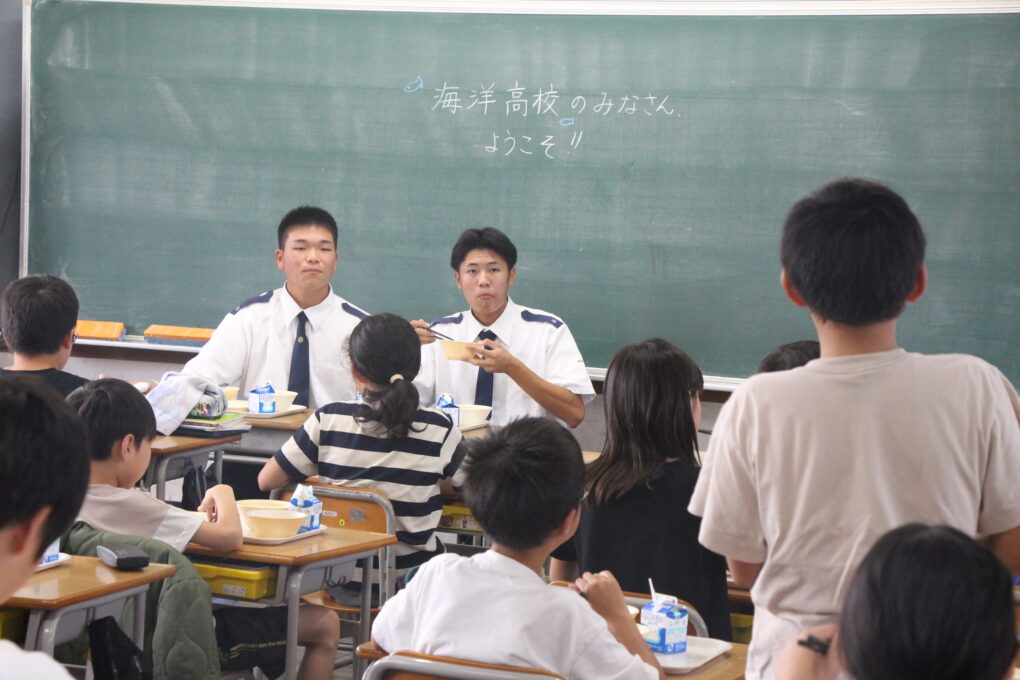 前日に地元で漁獲された「ヤナギ」(サワラの幼魚)を三枚卸しにし、切り身にしたものが給食センタにより加工され、宮津市内の幼稚園、小・中学校で提供されました。交流をさせていただいた園児、児童、生徒の皆さんには大変喜んでいただきました。