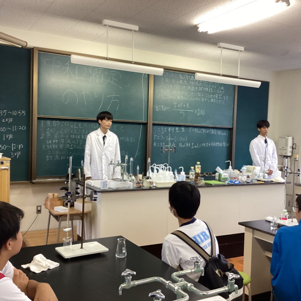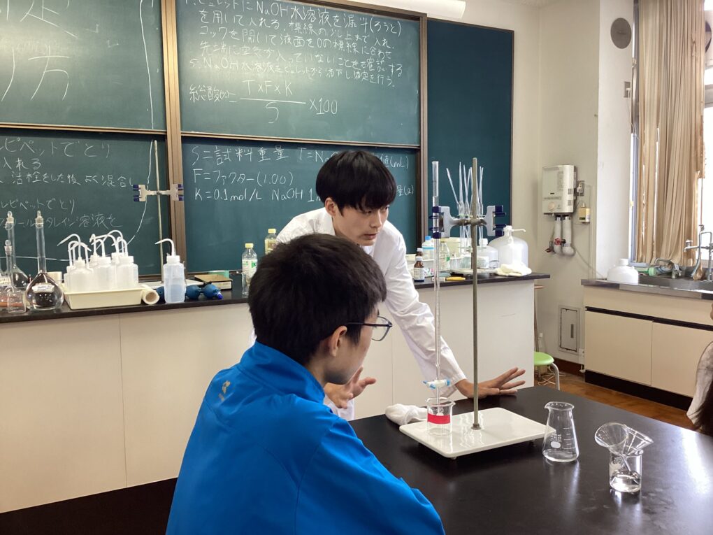 参加経験のある中学生の皆さんには中和滴定を体験していただき、初めて体験する生徒の皆さんには施設見学と手作りてんぷらづくりを見ていただきました。