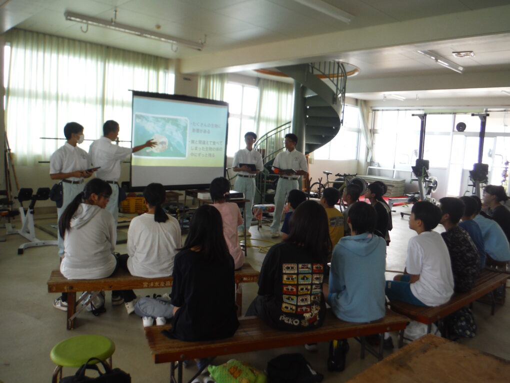 9月30日(火)、京丹後市立峰山小学校6年生の皆さんが来校され、キャリアプランニング・サポート(海洋高校が提供する体験プログラム)の一環で、海洋科学科2年生が担当し、「海ごみ教室」を受講していただきました。