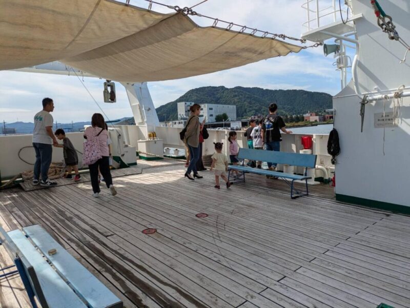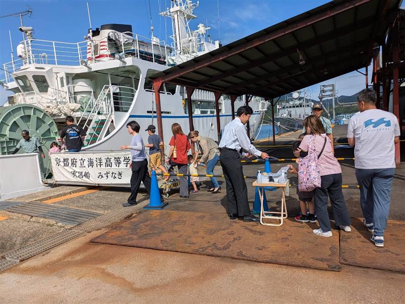 実習船9月28日(日)に舞鶴水産流通組合周辺にて、まいづる魚まつりが開催され、実習船「みずなぎ」も海上自衛隊の艦船や巡視艇「らくよう」とともに舞鶴港に入港し一般来場者を案内しました。多くの方が実習船「みずなぎ」を見学に来られました。お越しくださいました皆様ありがとうございました。