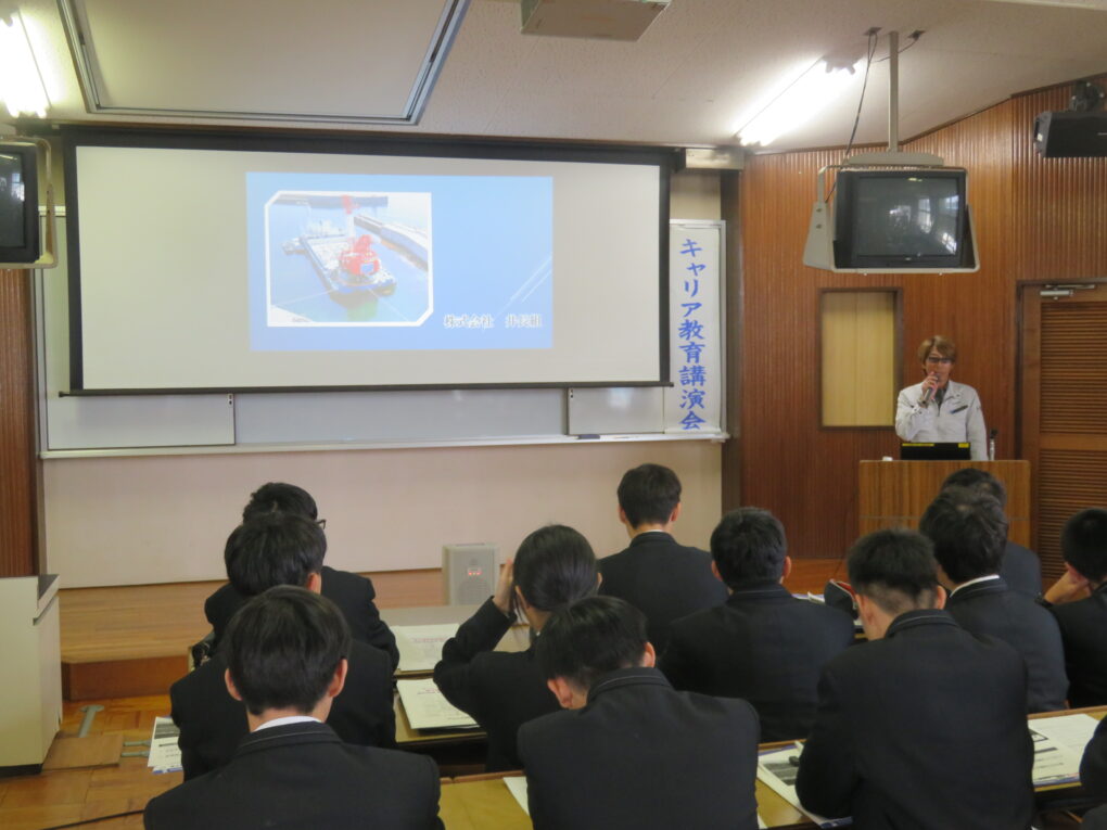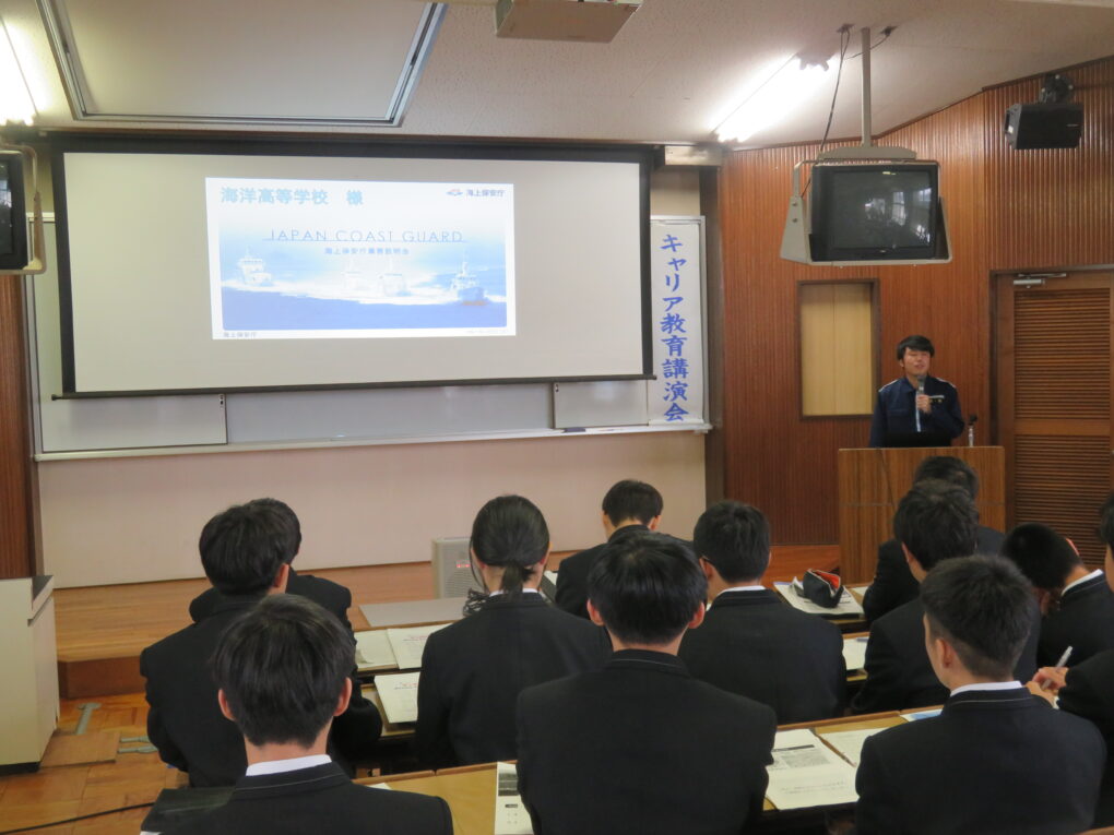 今回は、働く喜びや企業の技術や商品、サービスの歴史や価値、学校生活と仕事の関連等について、3社(㈱井長組、宮津商工会議所、宮津海上保安署)様に御講演いただきました。講演後には、積極的に質問をしている生徒もおり、進路について考える良い機会となりました。