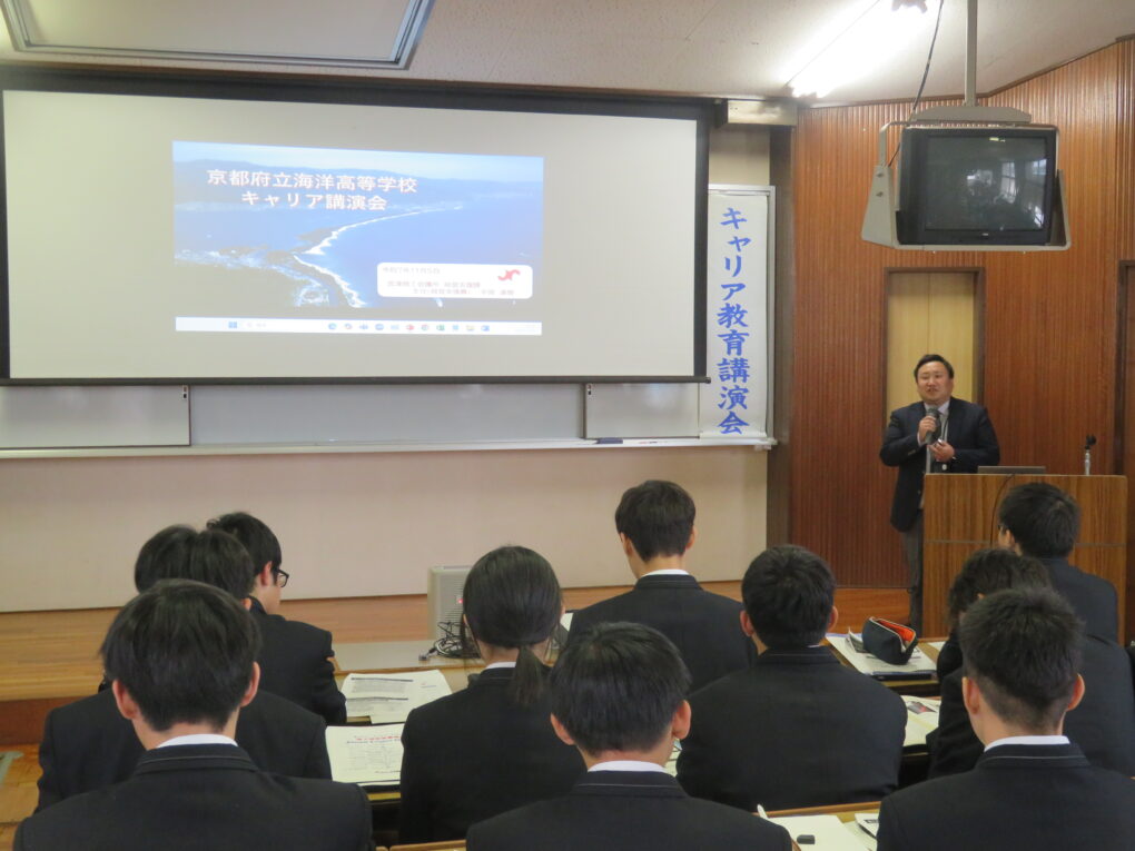 11月5日(水)、1年生のキャリア学習として、宮津商工会議所様の御協力をいただき、宮津市の企業を招いた「キャリア教育講演会」を受講しました。