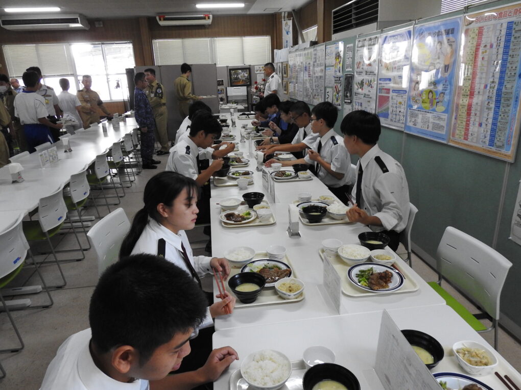 給養講堂や史料室等を見学させていただいた後、護衛艦あさぎりを見学させていただきました。また、今回初の試みとして、隊員の方々と同じ昼食をとらせていただきました。