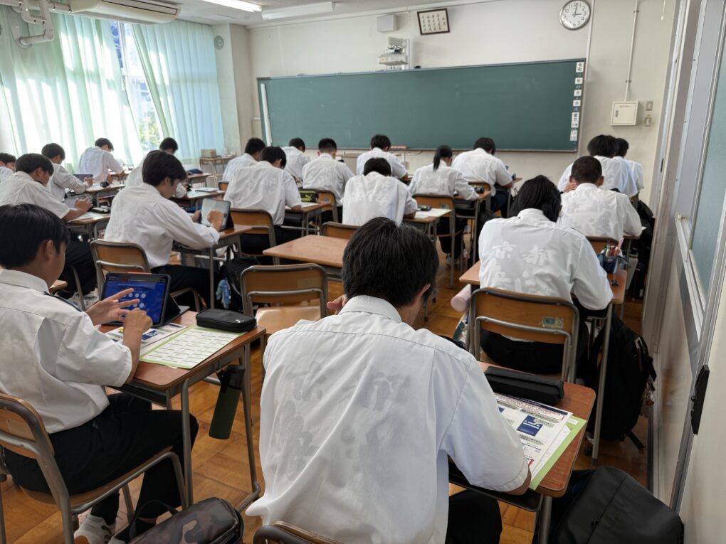 10月2日(水)、LHRの時間を活用して進路学習を行いました。「自分の職業適性を知る」をテーマに、適性診断の結果をもとに興味のある職業についてワークシートにまとめました。自分の適性を見極めながら進路選択の幅を広げる、有意義な時間となりました。