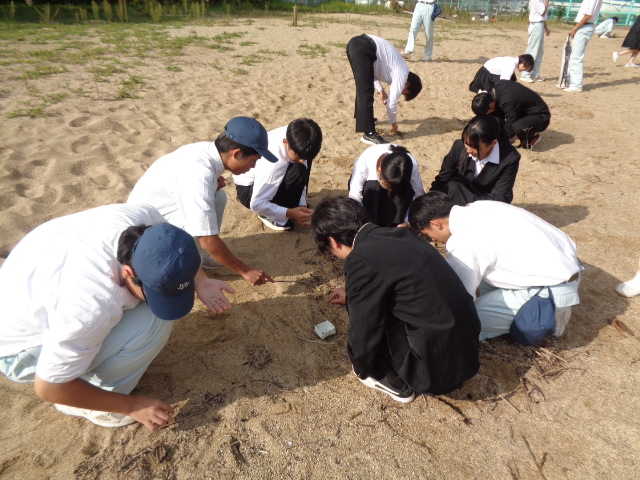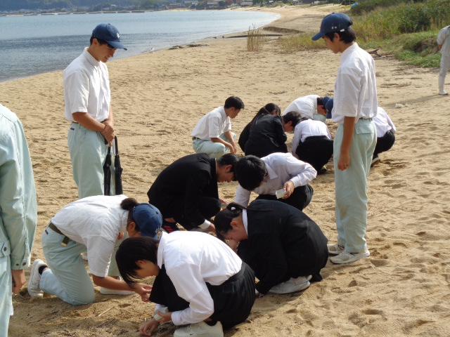 海洋科学科3年生が担当し、隣接する栗田浜の海浜調査ではマイクロプラスチックの採集や観察を行い、海ごみ問題に触れていただきました。今後も、地元栗田地域の環境について学びを連携していきたいと思います。栗田中学校の皆様、ありがとうございました。