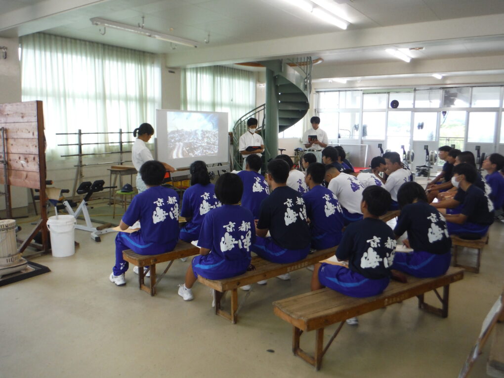 10月8日(水)、1年生「水産海洋基礎(実習)」の時間に、海洋科学科3年生が、日頃から行っている「海ごみ研究」の成果等を発表しています。