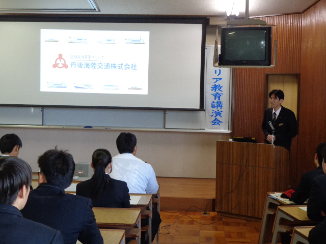 就職希望生徒は、宮津商工会議所 様のコーディネートにより、宮津市の企業3社(丹後海陸交通㈱、舞鶴税関支署宮津出張所、竹中罐詰㈱)から御講演いただき、働くことについて理解を深めました。