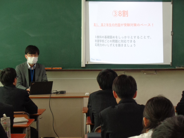 進学希望生徒は、㈱リクルート 星 智哉 様を講師にお招きし、スタディサプリを活用した活動メモの活用方法について講義を受講しました。