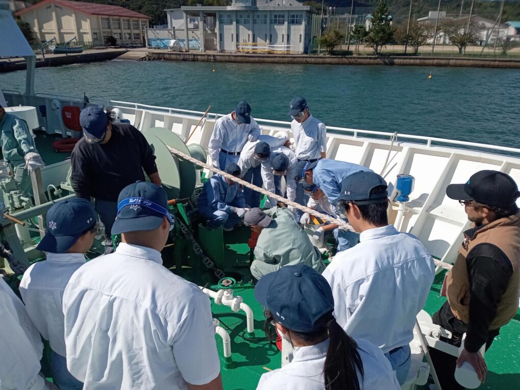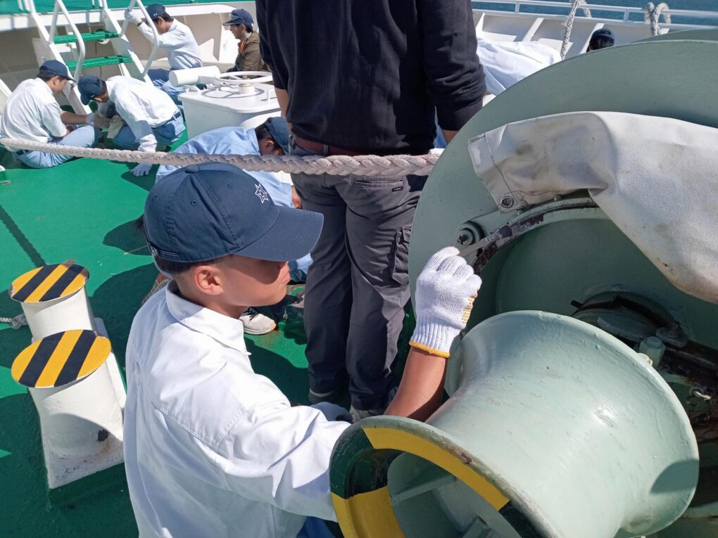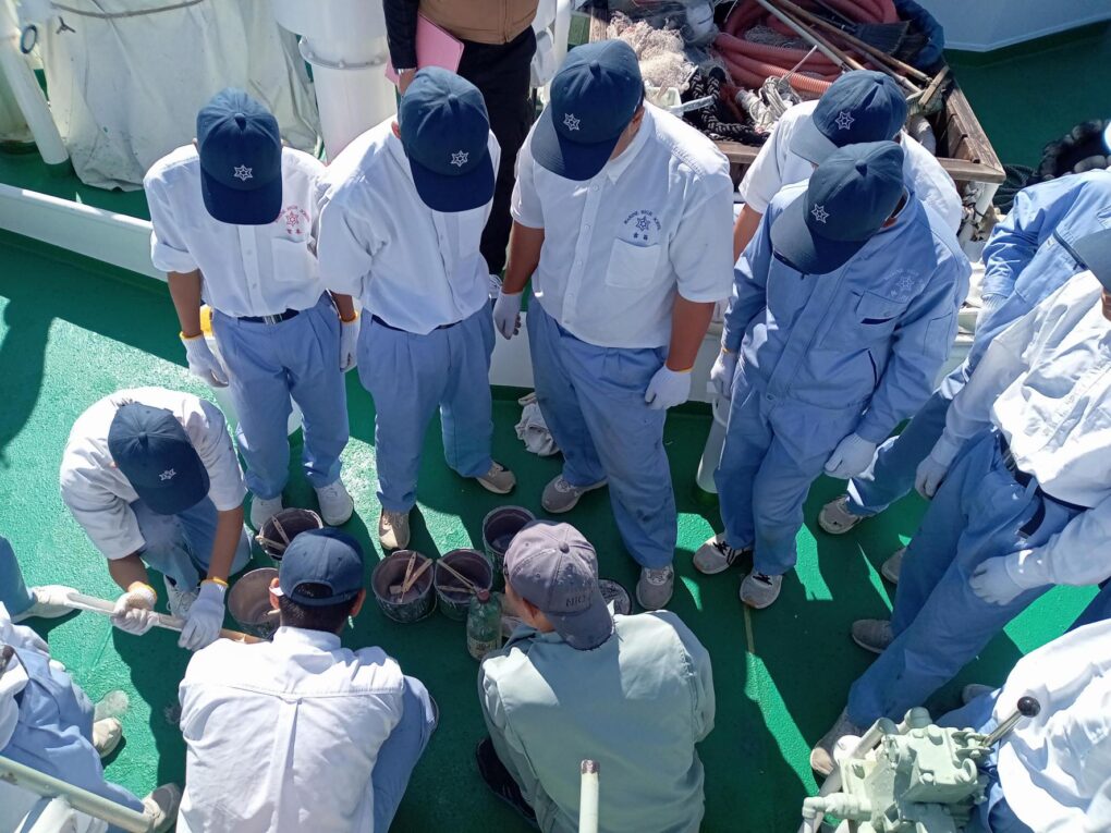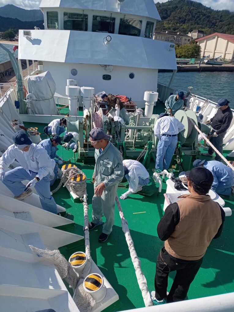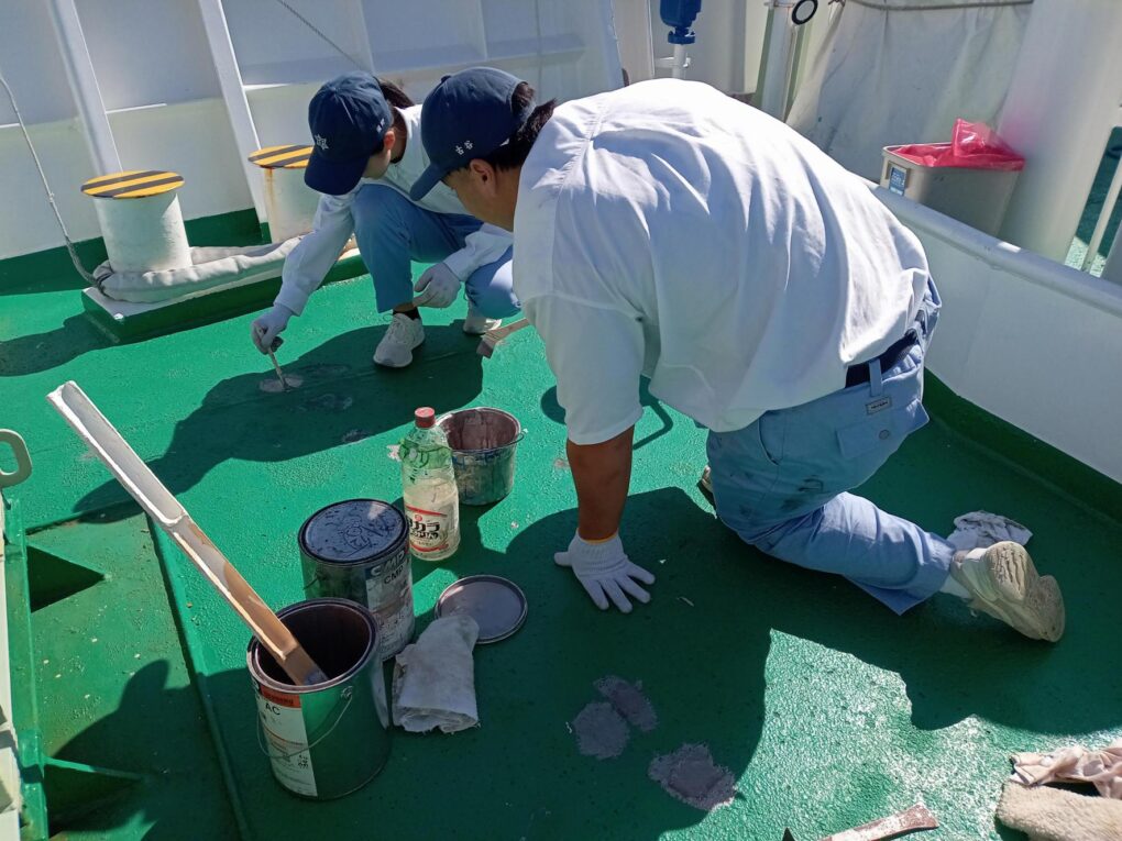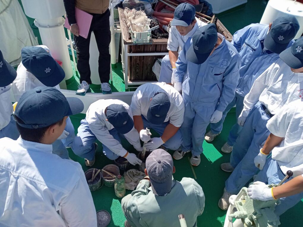 2船 錆打ち塗装実習(みずなぎ) 実習船 2025.11.11 10月23日(木)、航海船舶コース2年生が「総合実習」において、実習船「みずなぎ」の錆打ち塗装実習を行いました。 鉄製船体の錆びた部分の錆びを取り、塗装する船体のメンテナンス業務について学びました。 Post Views: 10