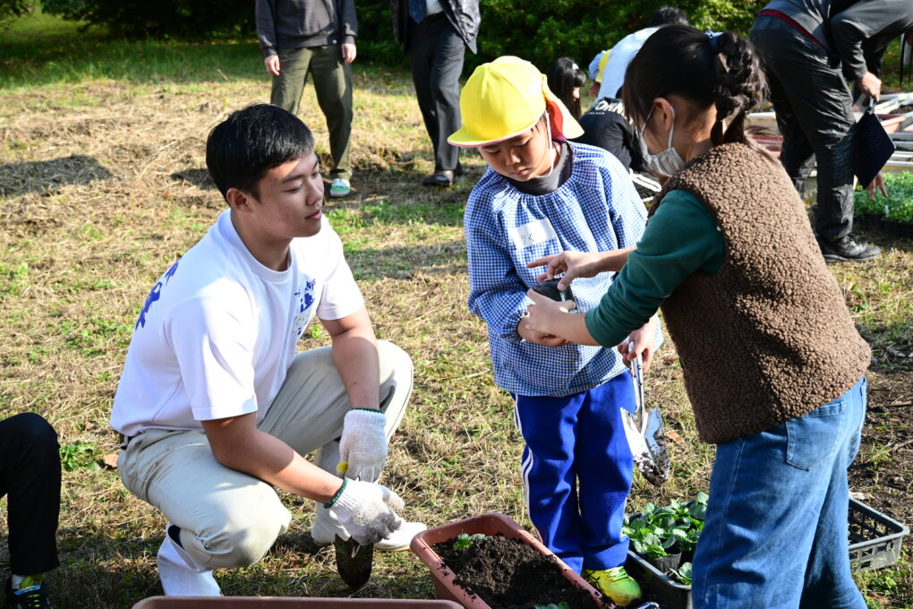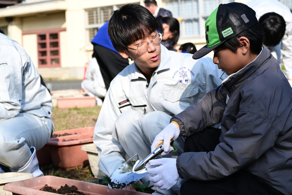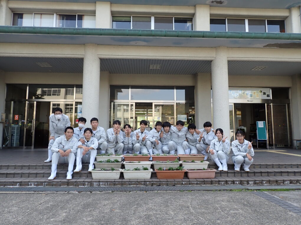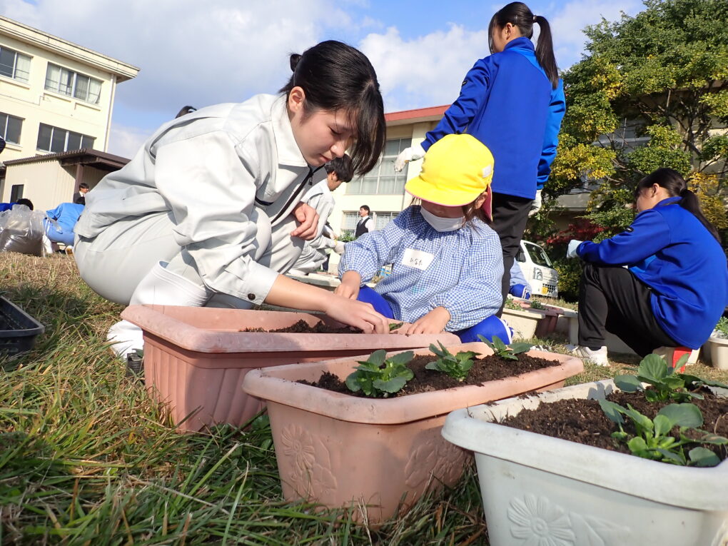 【栽培環境コース3年生】花いっぱい運動(秋) 栽培環境コース 2025.11.20 11月14日(金)、栽培環境コース3年生が栗田中学校(宮津市)を会場に、栗田幼稚園、栗田小学校、栗田中学校、本校栽培環境コース3年生合同で「花いっぱい運動(秋)」に取り組みました。 開会行事での作業説明の様子。 花いっぱい運動の前に、自己紹介を行いました。 花いっぱい運動開始です。 初めは緊張している様子でしたが、花いっぱい運動を通して打ち解けている様子が手に取るようにわかりました。 「好きな食べ物は?」「趣味は何?」楽しそうに会話してました。 新聞社の方から花いっぱい運動の取材をしていただきました。 寒い冬を乗り越え、春には学校周辺をパンジーがきれいに彩ってくれると思います。 栽培環境コース3年生は達成感に満ち溢れている様子でした。 Post Views: 8