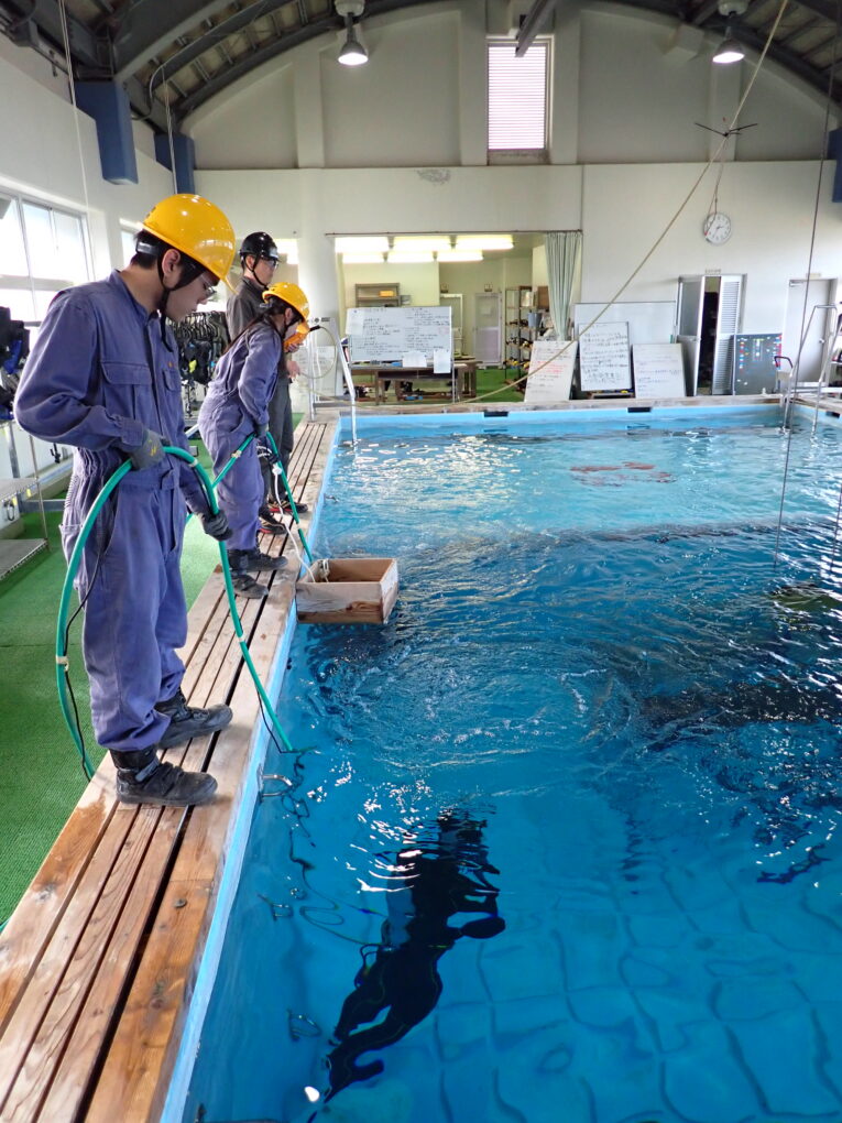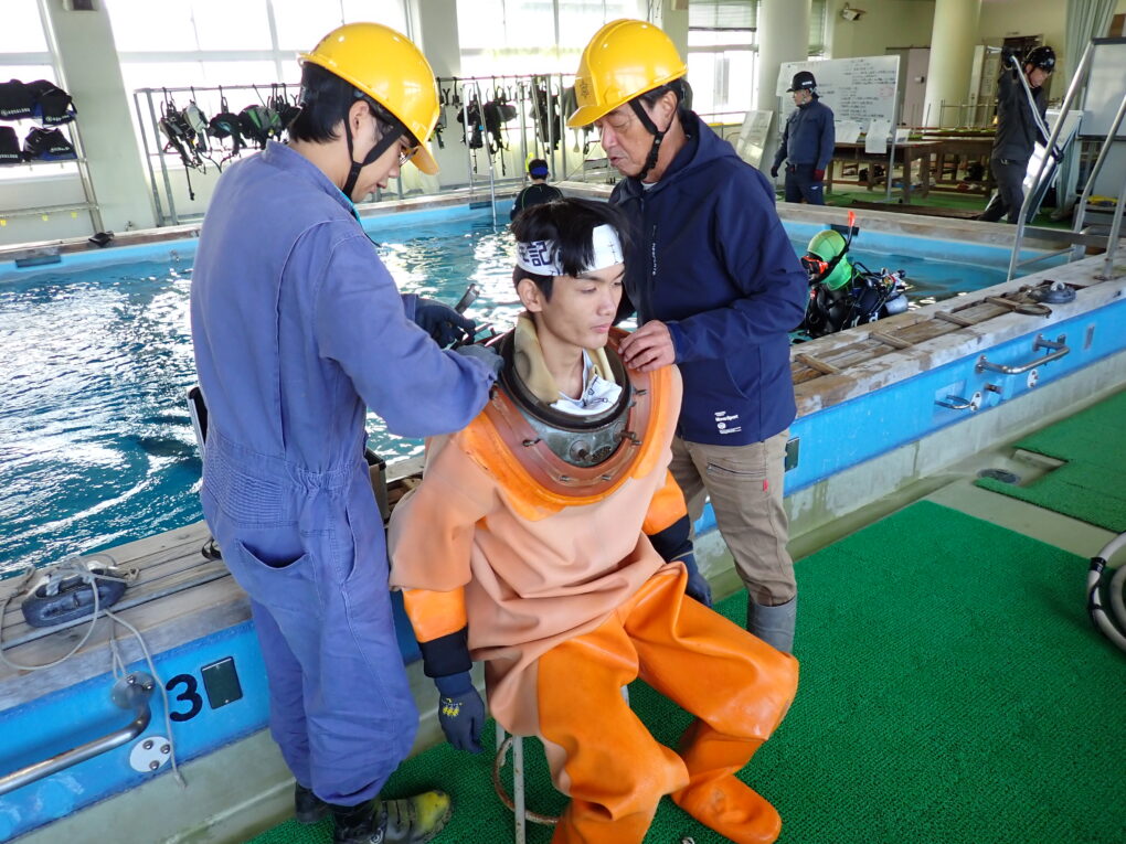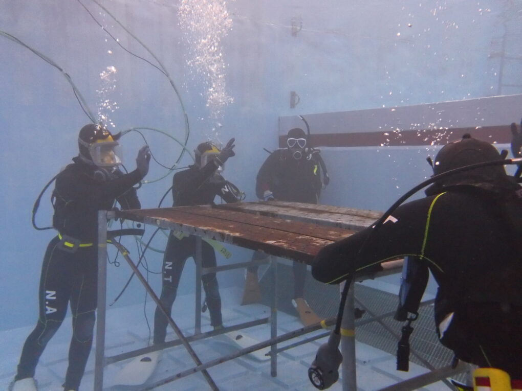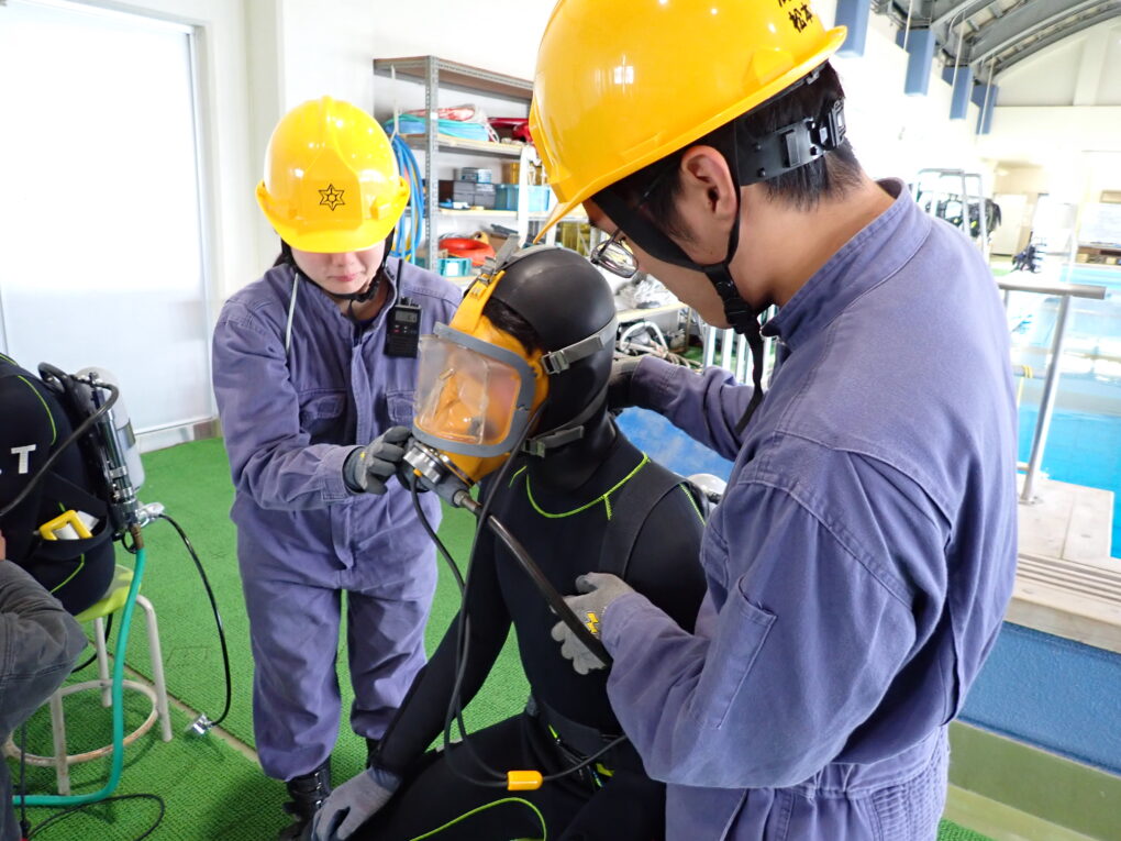 【海洋技術コース3年生】ダイビング(作業潜水) 海洋技術コース作業工程最終確認。 2025.11.20 11月11日(火)、海洋技術コース3年生「ダイビング」の様子です。 本時は、作業潜水実習に取り組みました。 作業工程最終確認。 マスク潜水ダイバー ヘルメット潜水ダイバー 水中で足場を組み立てていきます。 水中でコミュニケーションを取りながら安全に作業を進めていきます。 陸上監視室から水中ダイバーに作業指示を出します。 テンダー(陸上支援員)の役割も重要です。 水中で足場の組み立てが完成しました。安全第一で作業を終えることができました。 Post Views: 3