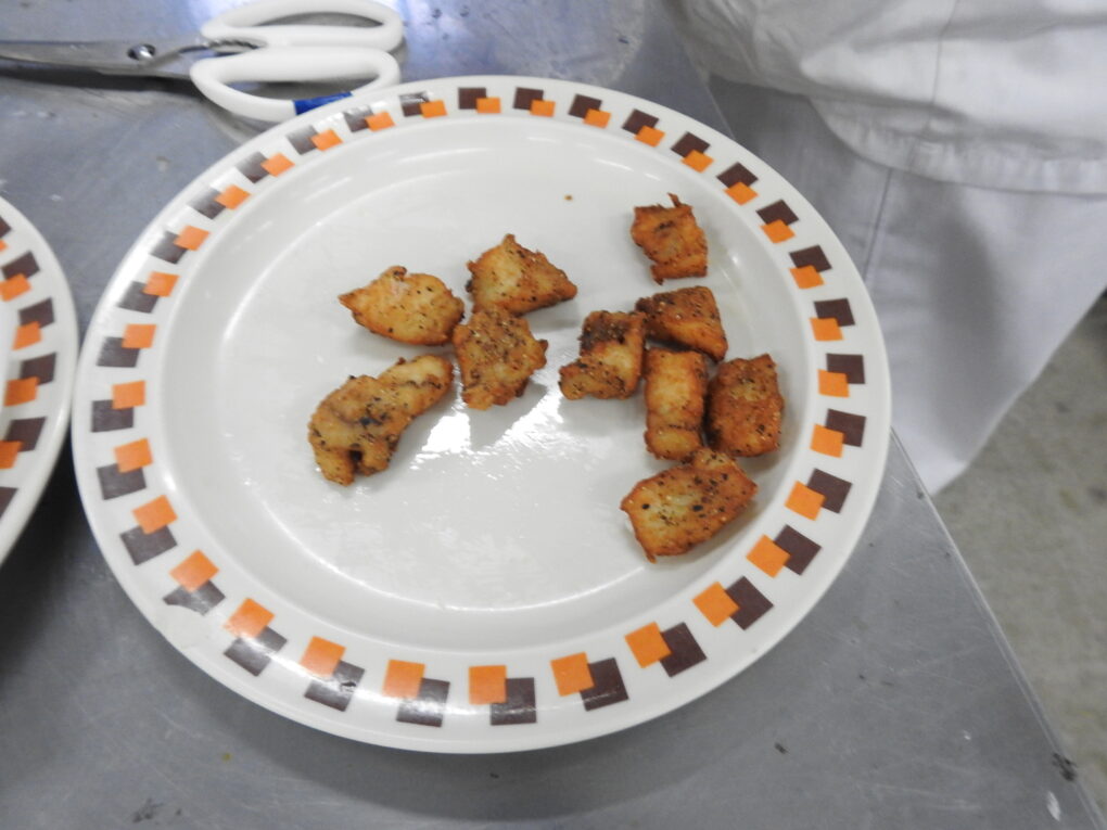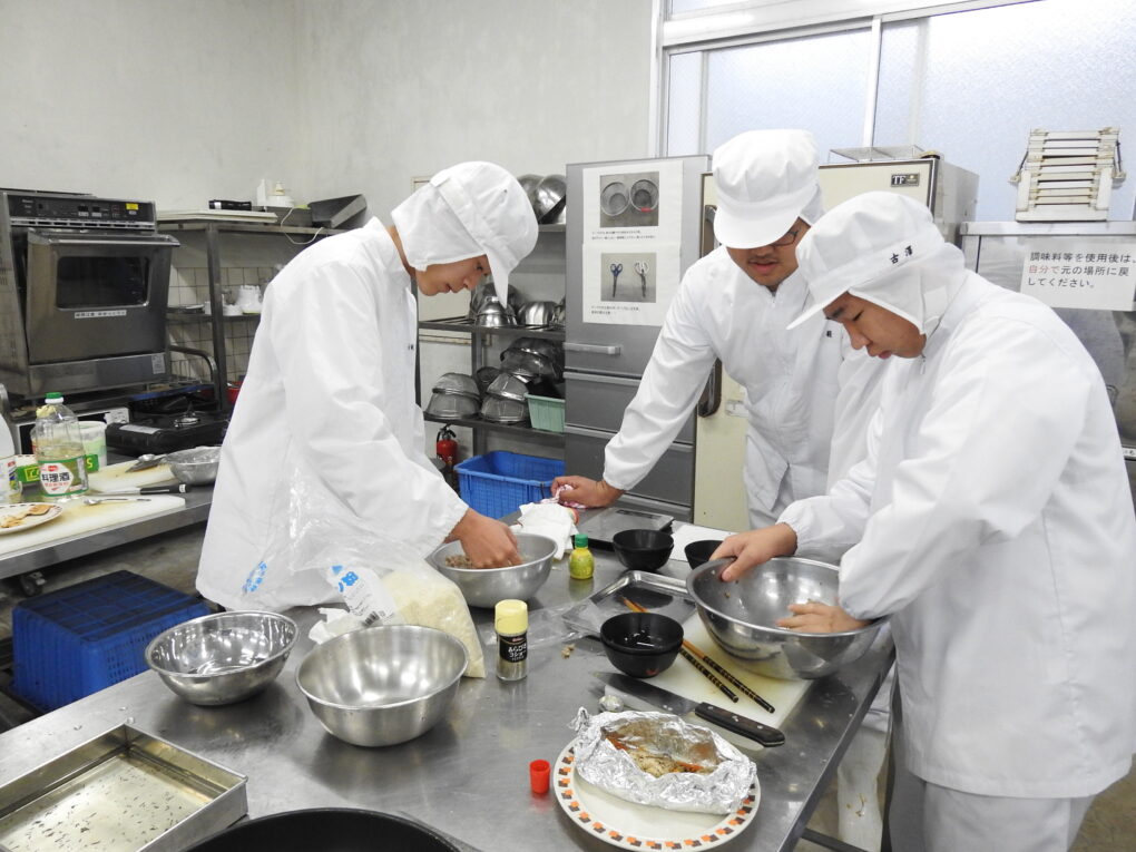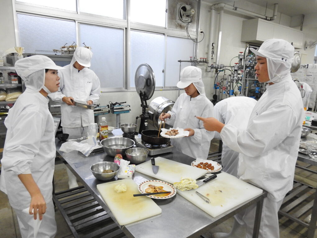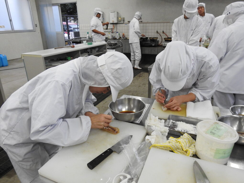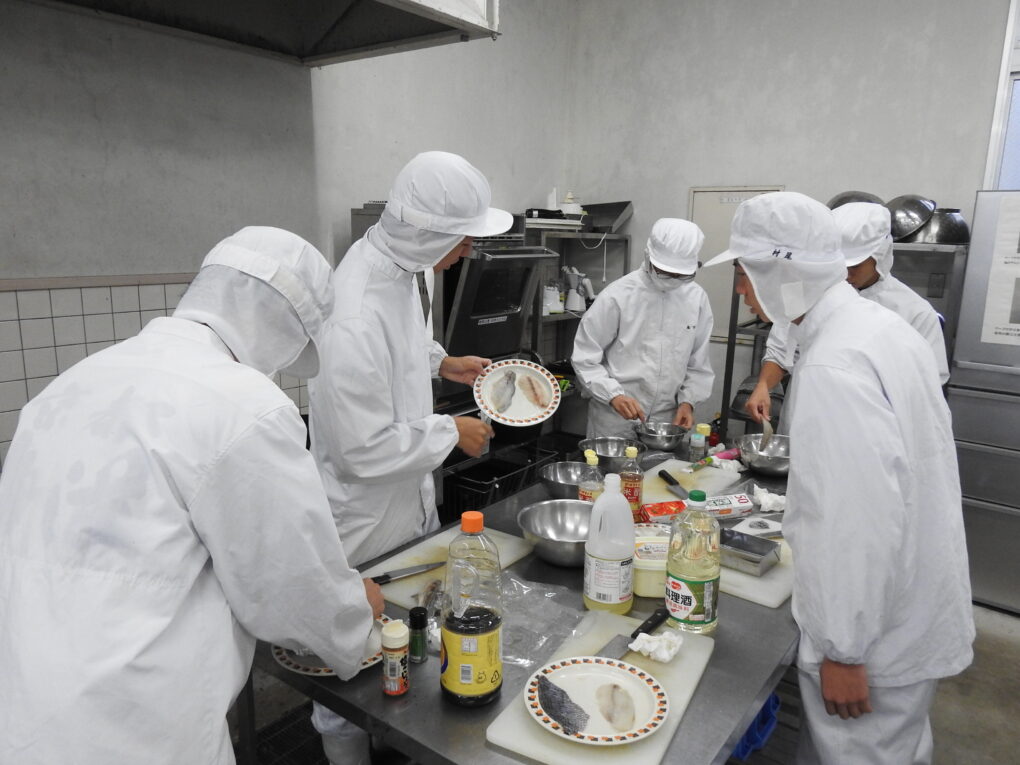 食品経済コース 10月31日(金)、食品経済コース3年生の「総合実習」において、ティラピアの加工とお魚ハンバーグ製造の試作を行いました。