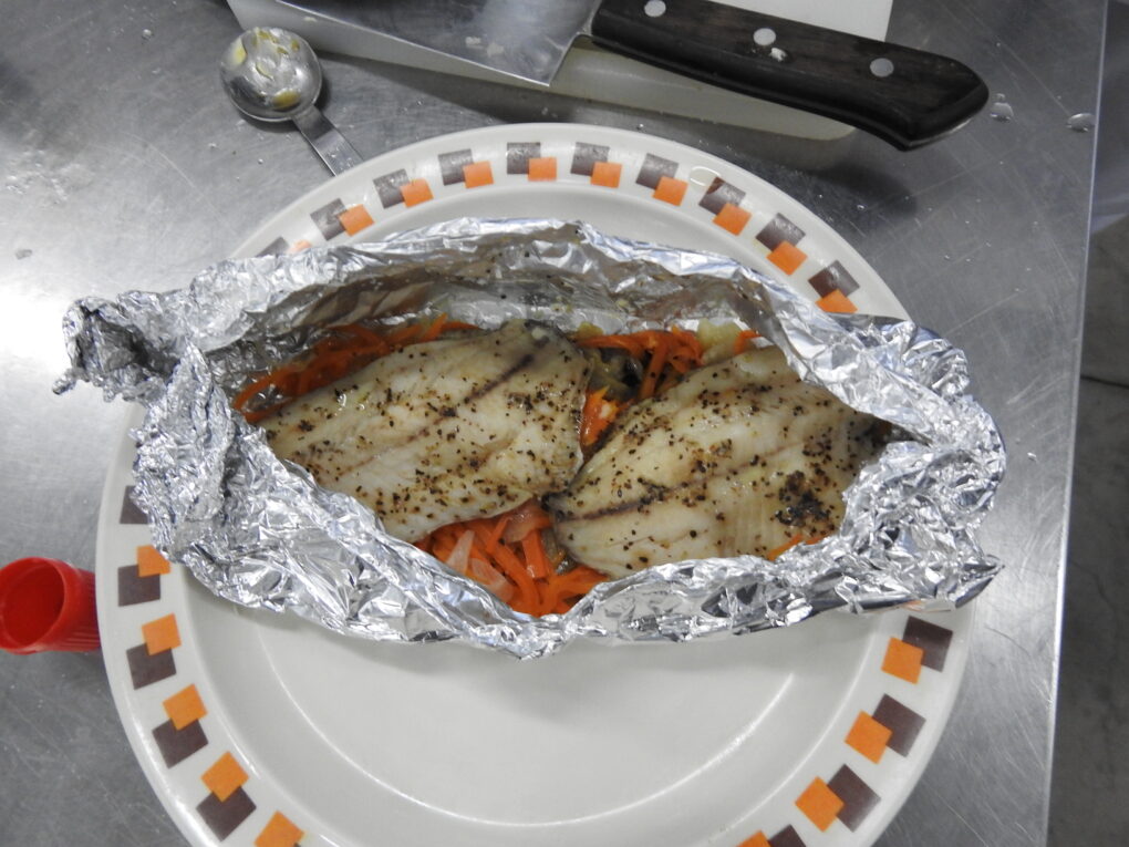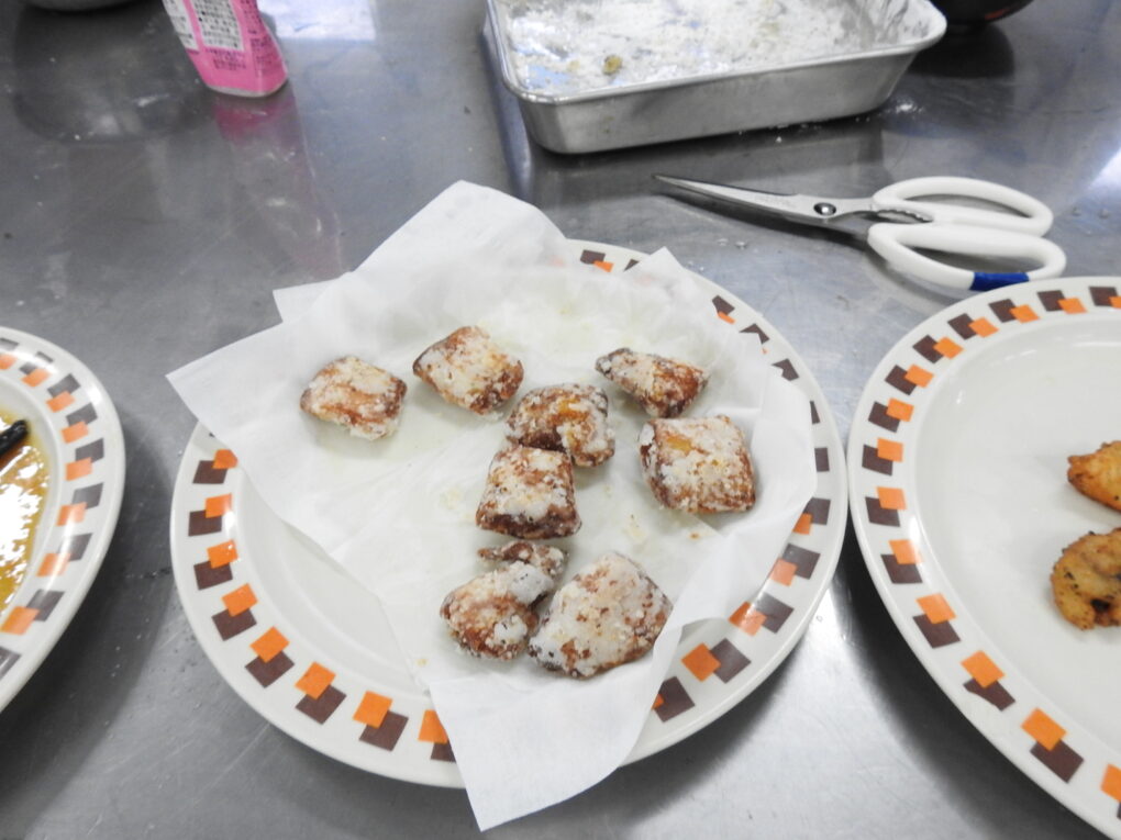 ティラピアは本校、栽培環境コースが実習で養殖した個体を提供してもらい、加工と試食を行いました。