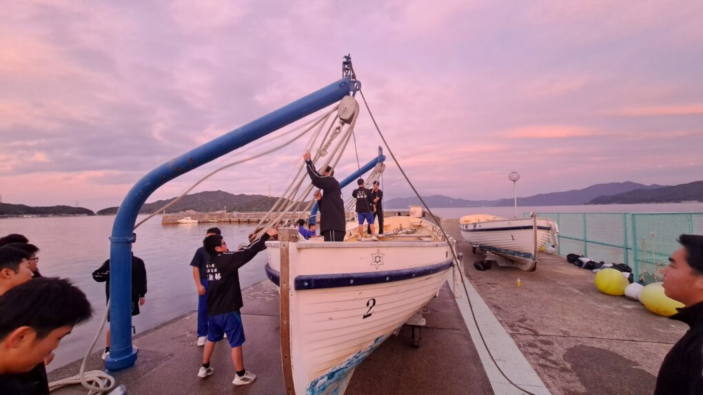 本校の位置する京都府北部では、冬季は海が荒れ、日が暮れるのも早いので、カッターの乗艇練習をすることができません。今年度の対外試合が終了したので、艇を上架し、感謝の気持ちを込めて1週間かけて艇掃除を行いました。