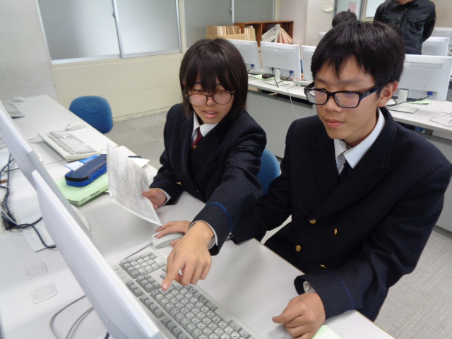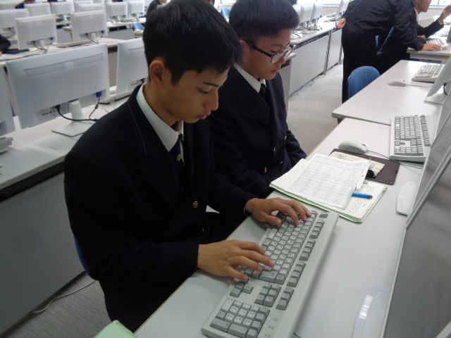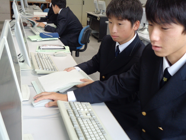 11月14日(金)、海洋科学科2年生が、日頃から取り組んでいるGLOBE事業(本校は、平成25年度から指定を受けています。)の観測データ(天候・雲量・水温など)を、二人一組でGLOBE専用シートに入力を行った後、グラフから経年考察を行いました。