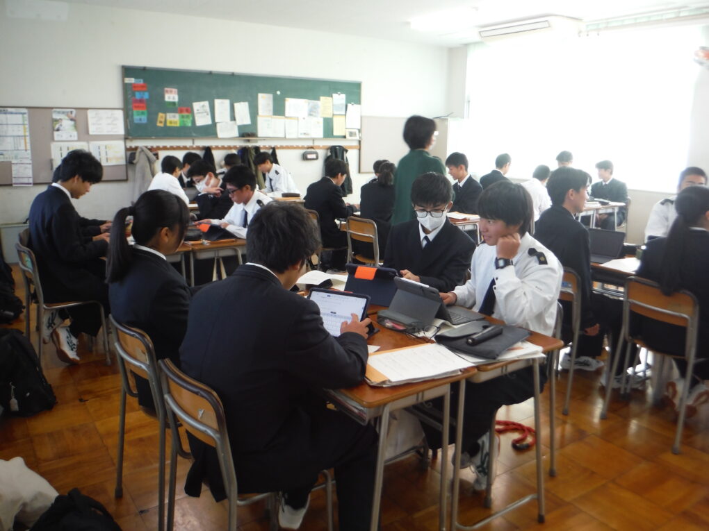 この日のテーマは、「自校の生徒の生活実態を調査する。」で、生徒たちはグループワークを通して、他者と協働する力を養っています。