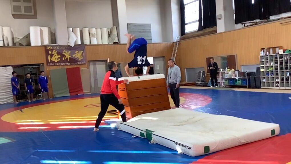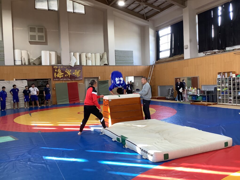 【保健体育科】2学期研究授業を実施 普通教科跳び箱の確認 2025.11.28 11月14日(金)、研究授業(2年1組と航海船舶コースから選択授業:跳び箱運動)を実施しました。多くの先生方の参観の下、生徒は緊張しながら実技練習とiPadを活用した動画確認の振り返りなどから、技能向上へとつなげる授業を行いました。 準備運動 跳び箱の確認 実技① 実技② 動画撮影後の振り返り Post Views: 5