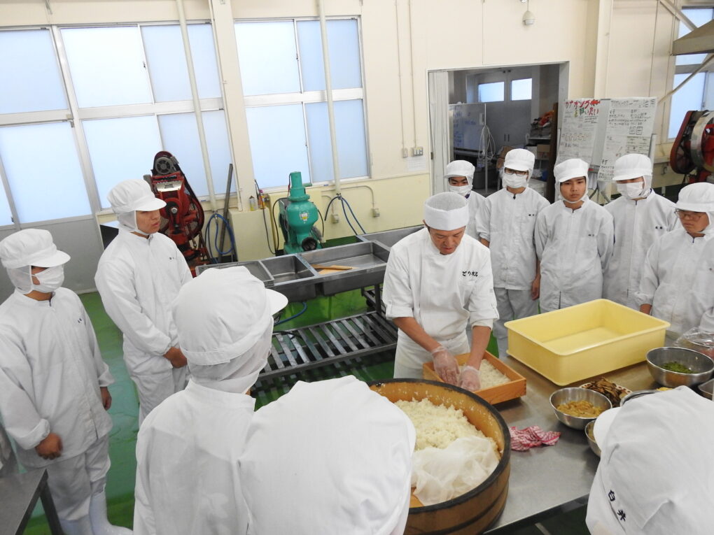 食品経済コース 11月20日(木)、食品経済コース2年生「総合実習」において、株式会社 とり松 小幡 竜介 様を講師にお迎えし、「丹後ばらずし」の製法の指導を受けました。