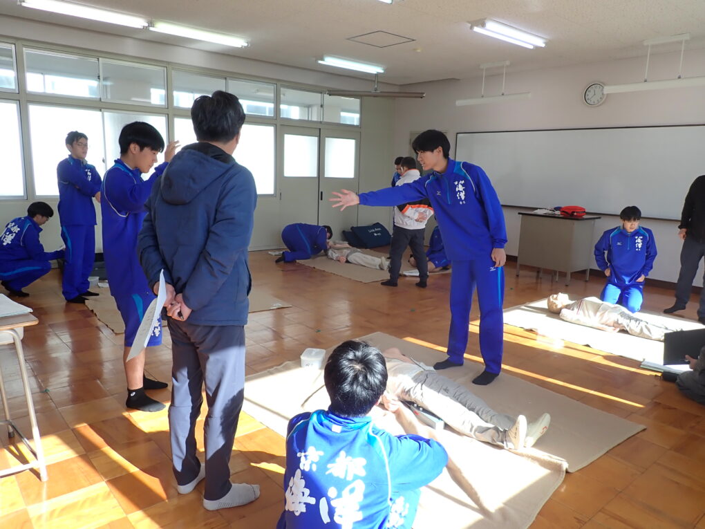 【海洋技術コース3年生】救急法検定試験 海洋技術コース検定前の最終確認の様子です。 2025.12.12 12月9日(火)、海洋技術コース3年生「ダイビング」の様子です。 本時は、救急法検定試験を行いました。 検定前の最終確認の様子です。 検定試験の様子。 検定試験後は、AEDの取り扱いについて学びました。 実際の現場を想定しながら、実技練習を行いました。 Post Views: 6