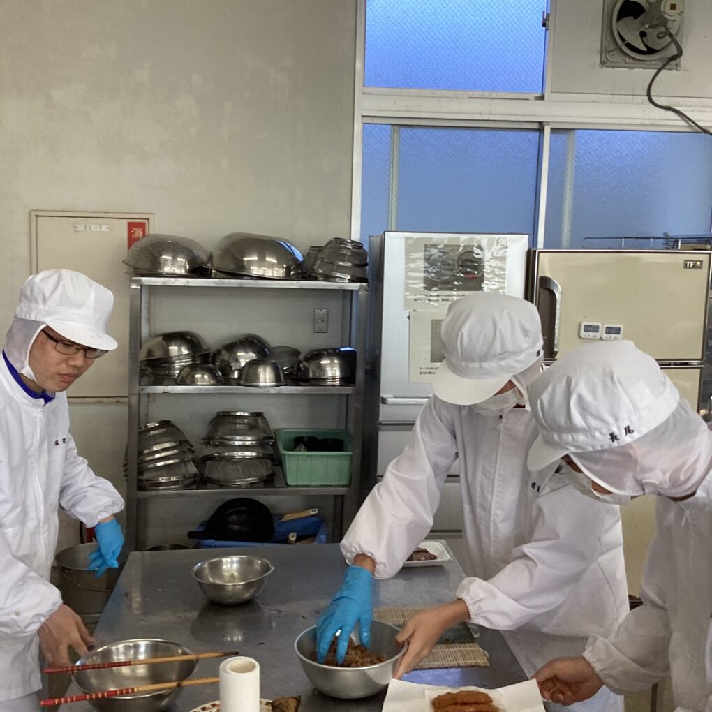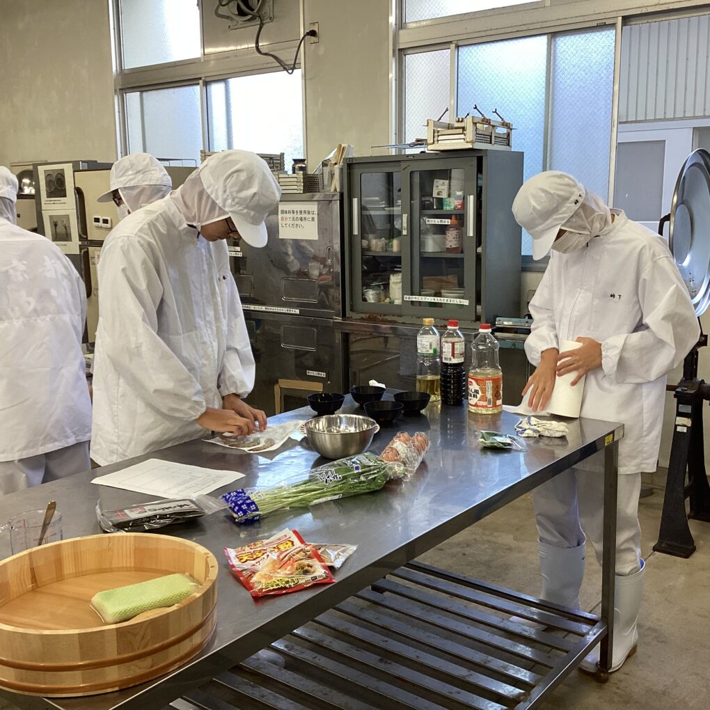 12月11日(木)、食品経済コース2年生の「総合実習」において、地域食材を用いた創作寿司に取り組みました。