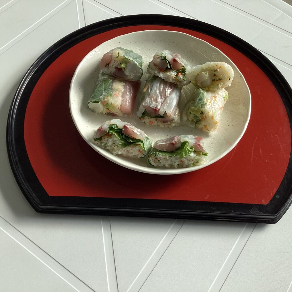 食品経済コース 12月11日(木)、食品経済コース2年生の「総合実習」において、地域食材を用いた創作寿司に取り組みました。