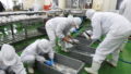 この日は、前日に海洋科学科及び食品経済コース2年生により塩漬けまで行われたバトンを食品経済コース3年生が受け、塩を洗い落とした上で半身におろす工程を担当し、味わっていただく方々の姿を想像しながら1匹1匹に愛情を込めて丁寧に扱いました。