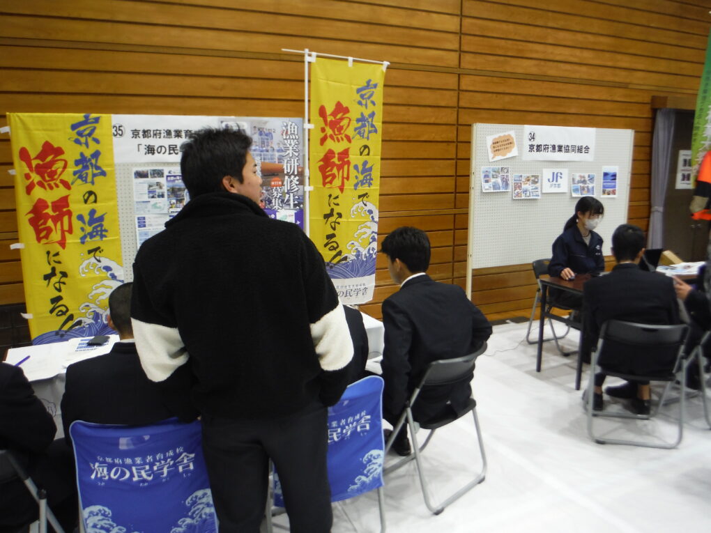 海洋散歩 12月11日(木)、大宮社会体育館(京丹後市)にて、京都府丹後広域振興局主催の「地元の産業を知ろう!高校生と企業の交流会」が開催され、本校からも就職希望者2年生が参加しました。