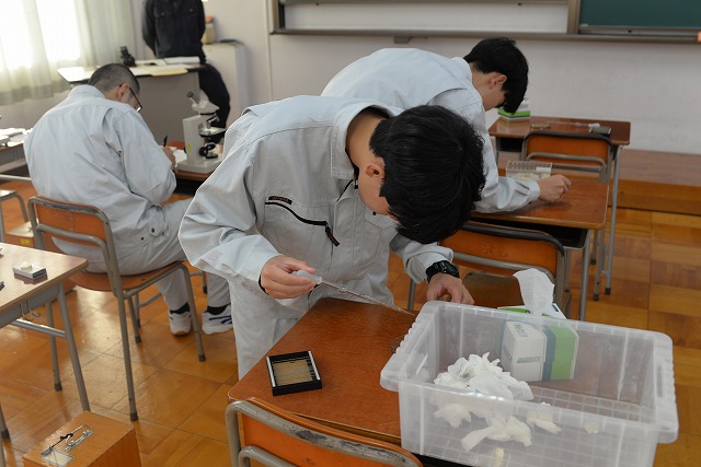 栽培環境コース12月12日(金)放課後、本校で栽培環境コース2年生が「令和7年度 2級栽培漁業技術検定」を受検しました。この検定は、栽培漁業に関する技術と知識を問う検定として、筆記部門(50問)及び実技部門(3題)の2部門で構成され、種苗生産技術や水産資源の安定供給に向けた知識や技術を身に付けることを目的としています。