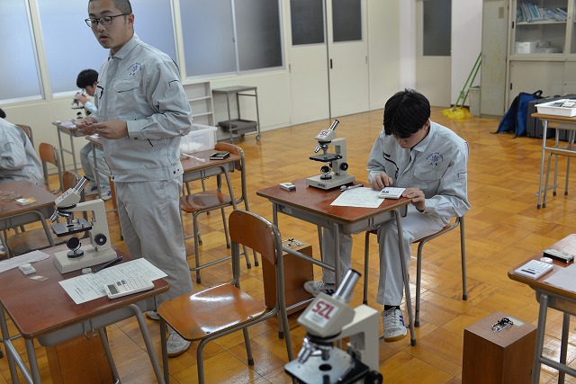 12月12日(金)放課後、本校で栽培環境コース2年生が「令和7年度 2級栽培漁業技術検定」を受検しました。この検定は、栽培漁業に関する技術と知識を問う検定として、筆記部門(50問)及び実技部門(3題)の2部門で構成され、種苗生産技術や水産資源の安定供給に向けた知識や技術を身に付けることを目的としています。