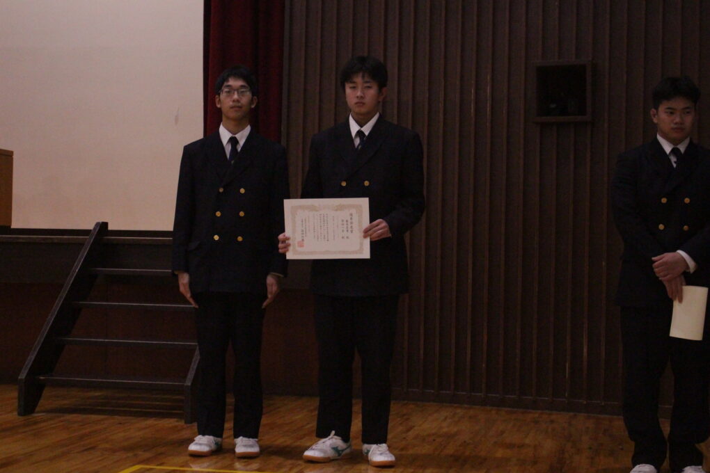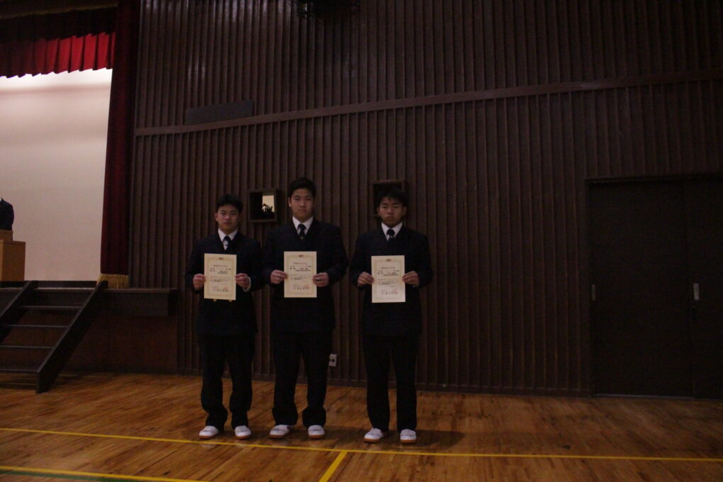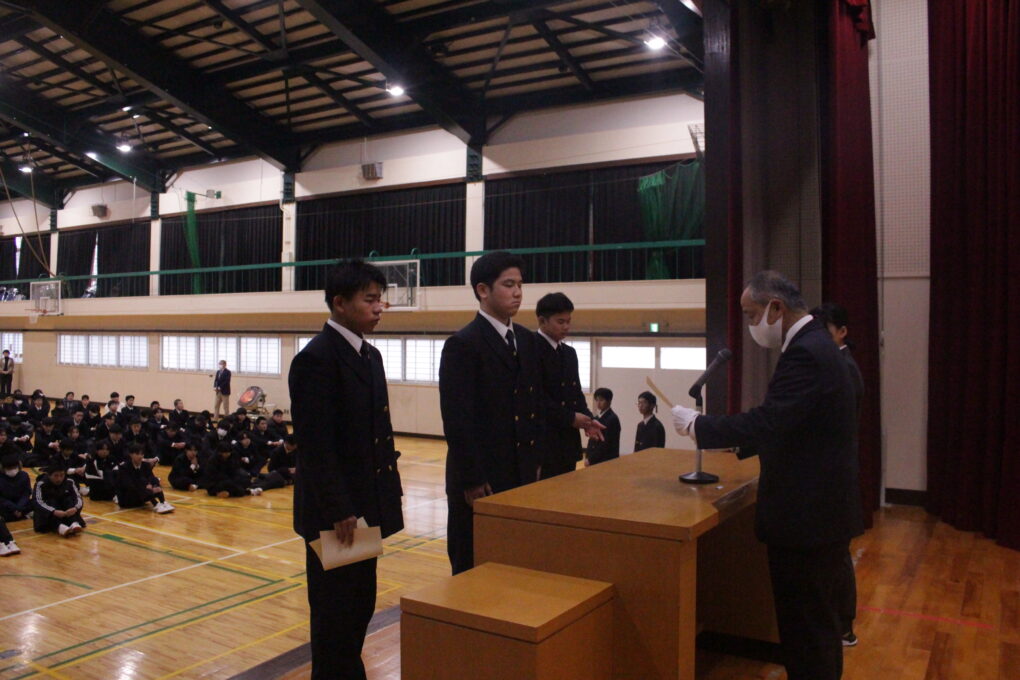 1月8日(木)、3学期始業式後に伝達表彰と壮行会を行いました。