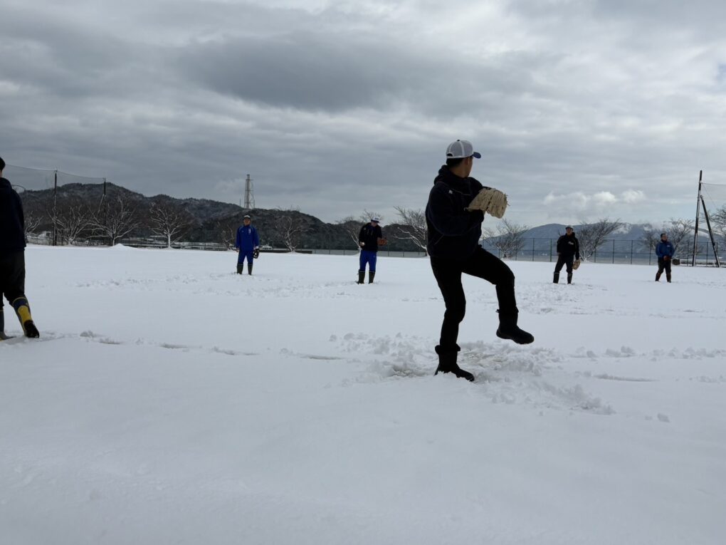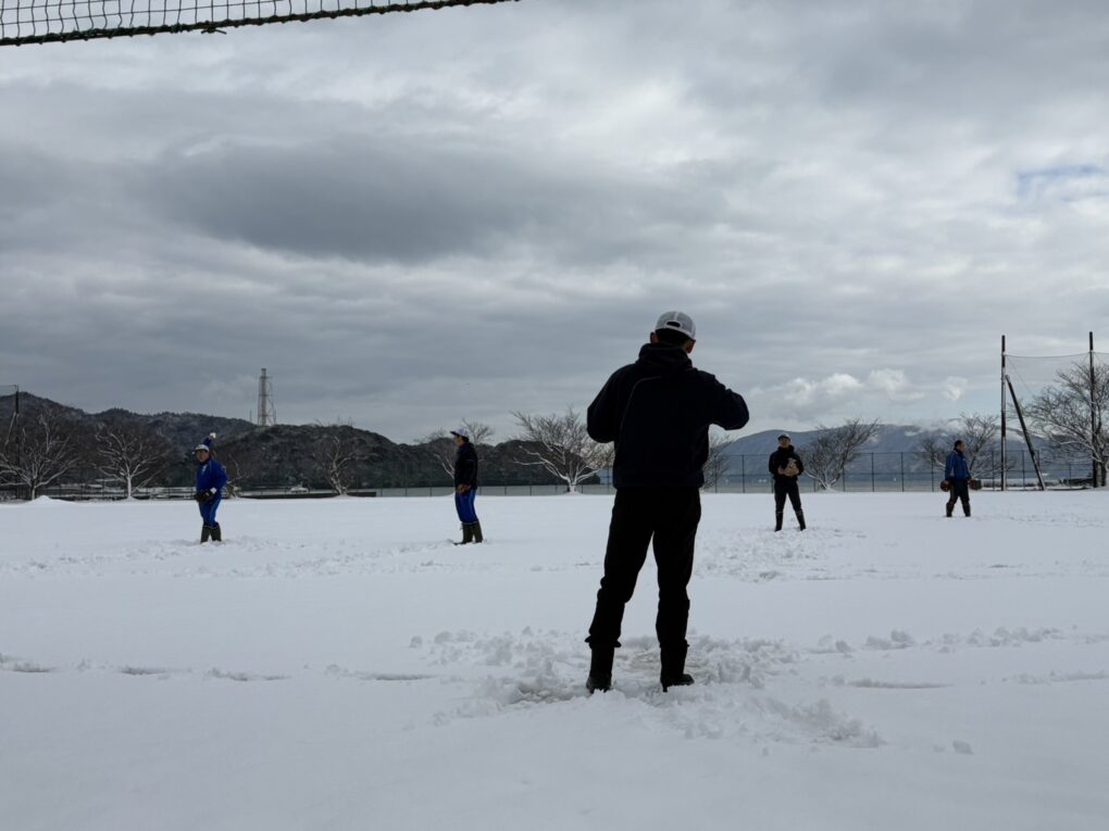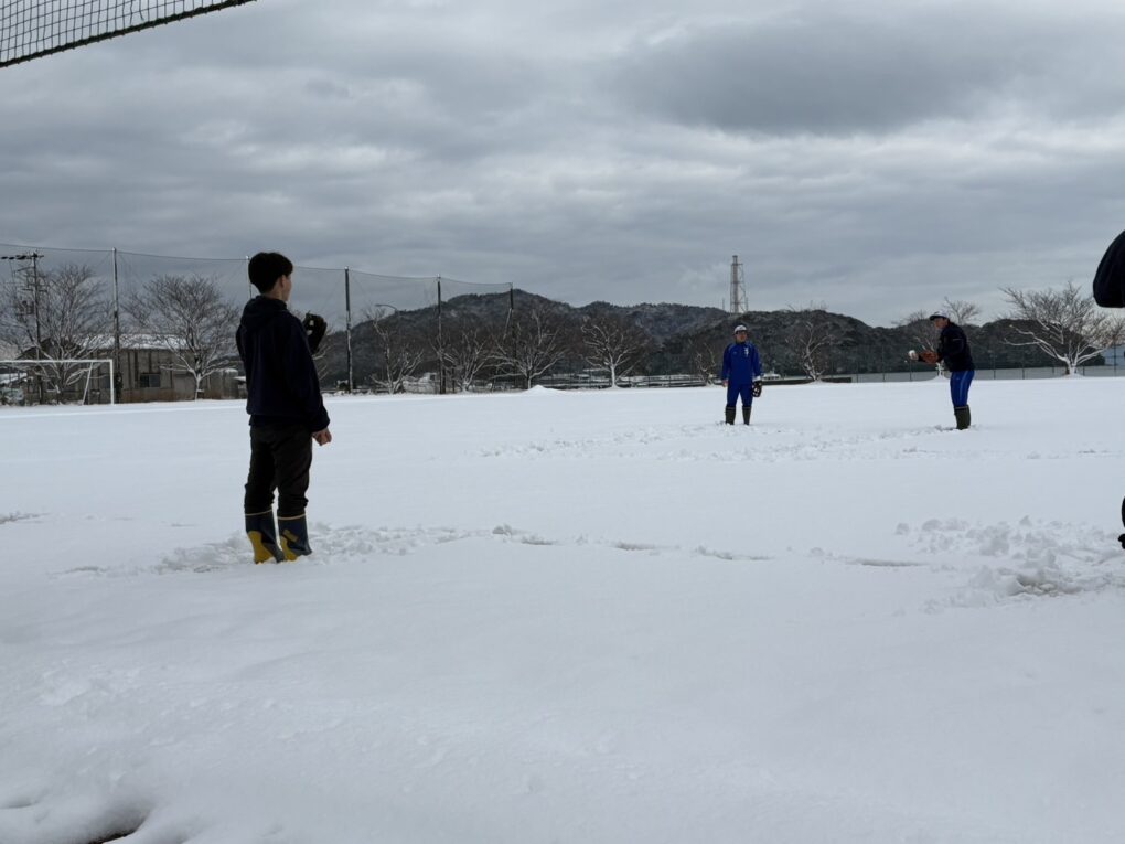 1月12日(月・祝)、グラウンドに雪が積もりましたが、少しでもボールの感覚を保つためにキャッチボール等を行いました。