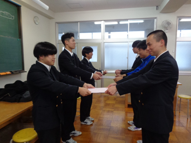 【サッカー部】卒部式 サッカー部 2026.02.03 1月26日(月)、サッカー部の卒部式を行いました。 後輩からは、秋に引退した3年生3名に、感謝の気持ちを込めて色紙を手渡しました。3年生からは、後輩にメッセージを贈りました。 Post Views: 12
