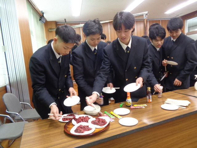 1月29日(木)、海洋科学科及び食品経済コース2年生が、本校を会場として「捕鯨と鯨食文化」をテーマとした出前授業を受講しました。