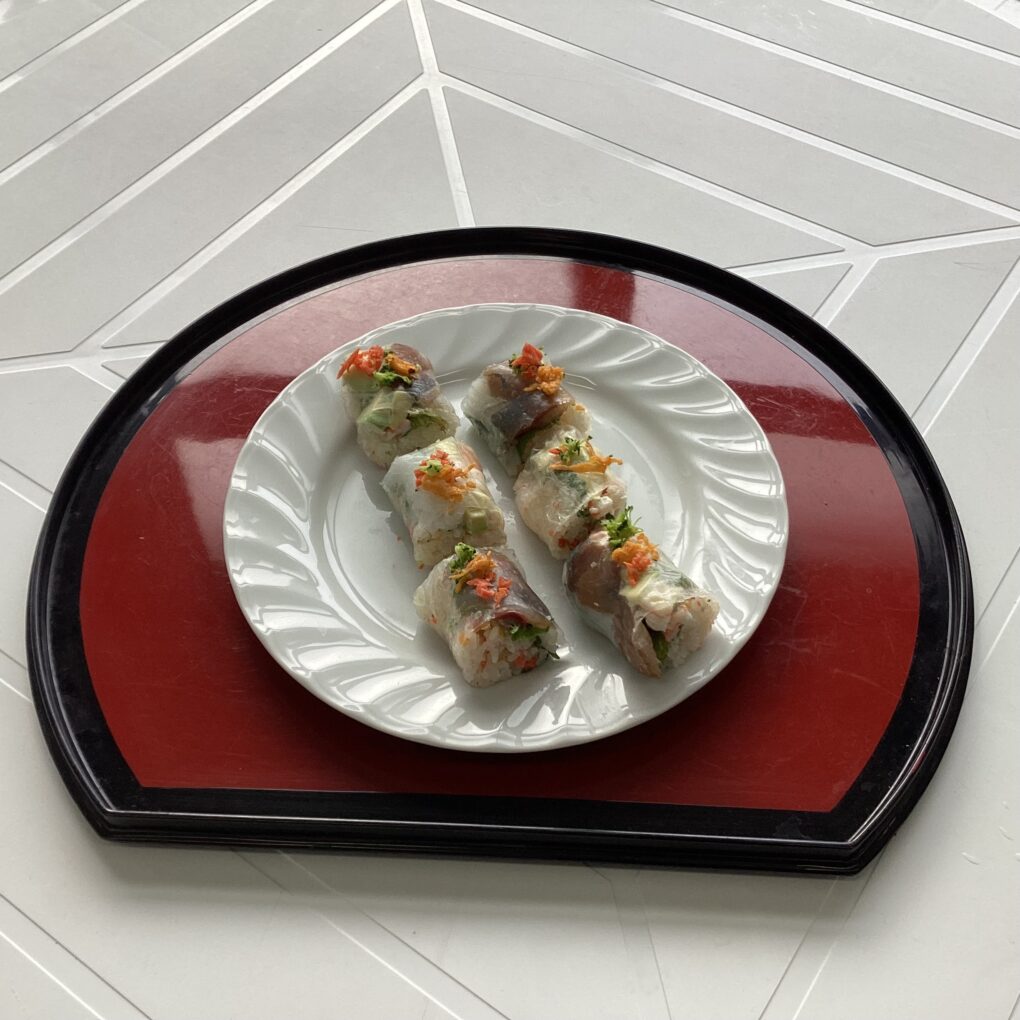食品経済コース 1月15日(木)、食品経済コース2年生の「総合実習」において、京都調理師専門学校から日本料理 伴田 祐耶 様を講師にお迎えし、創作寿司に取り組みました。