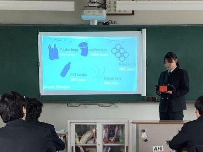 高校3年間の英語学習の集大成として、社会的な話題をテーマに3~5分の英語でのプレゼンテーションに挑戦しました。