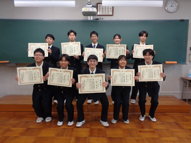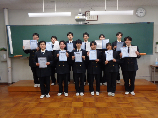 2月26日(木)、3年間の努力の成果として海洋科学科3年生が、各種表彰を受賞しました。