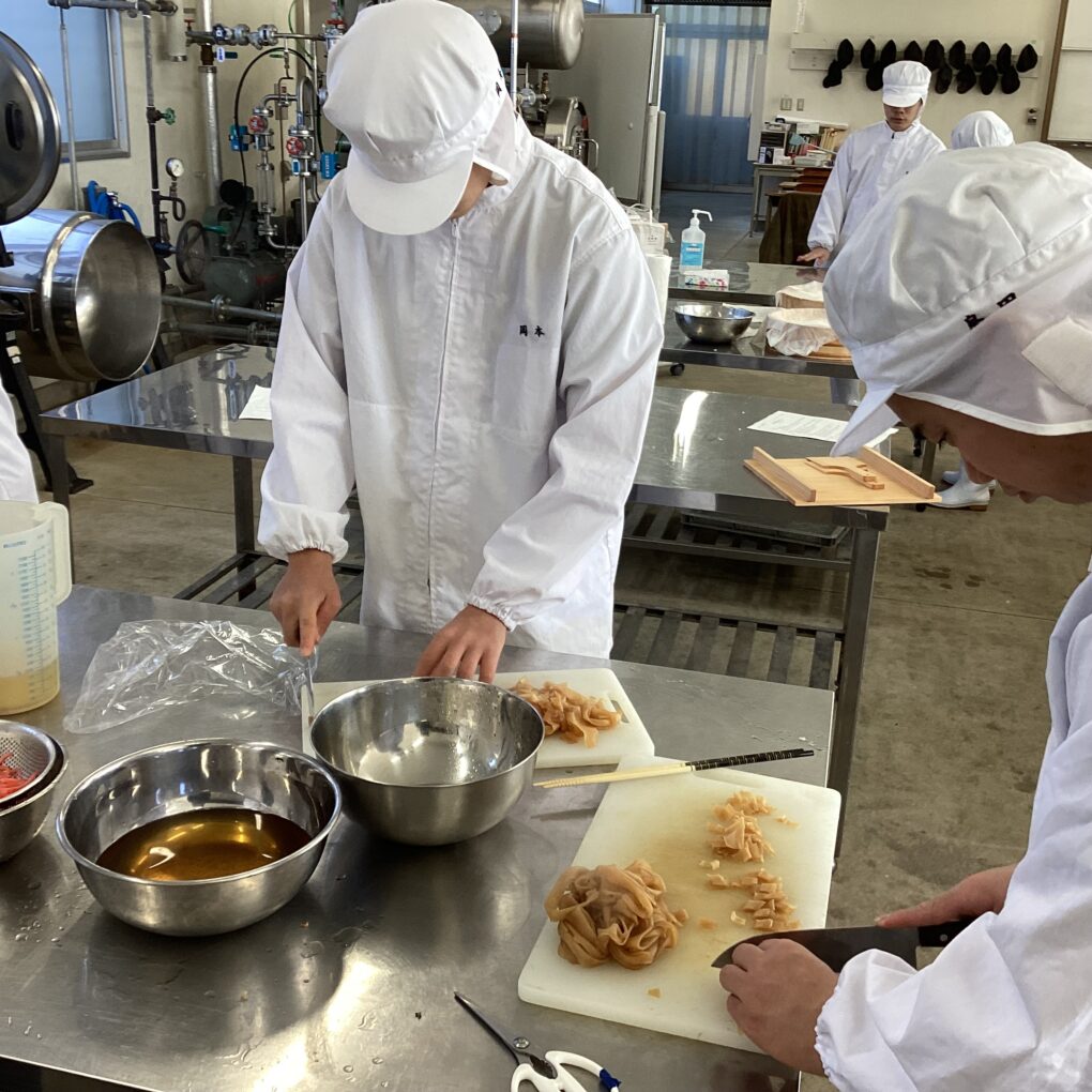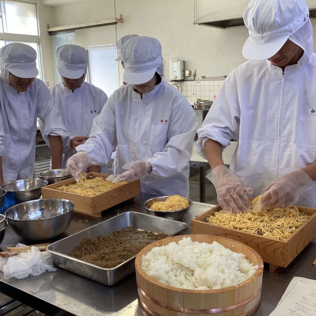 食品経済コース 2月13日(金)、食品経済コース2年生の「総合実習」において『丹後のばら寿司』の製造を行いました。