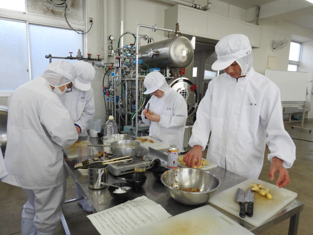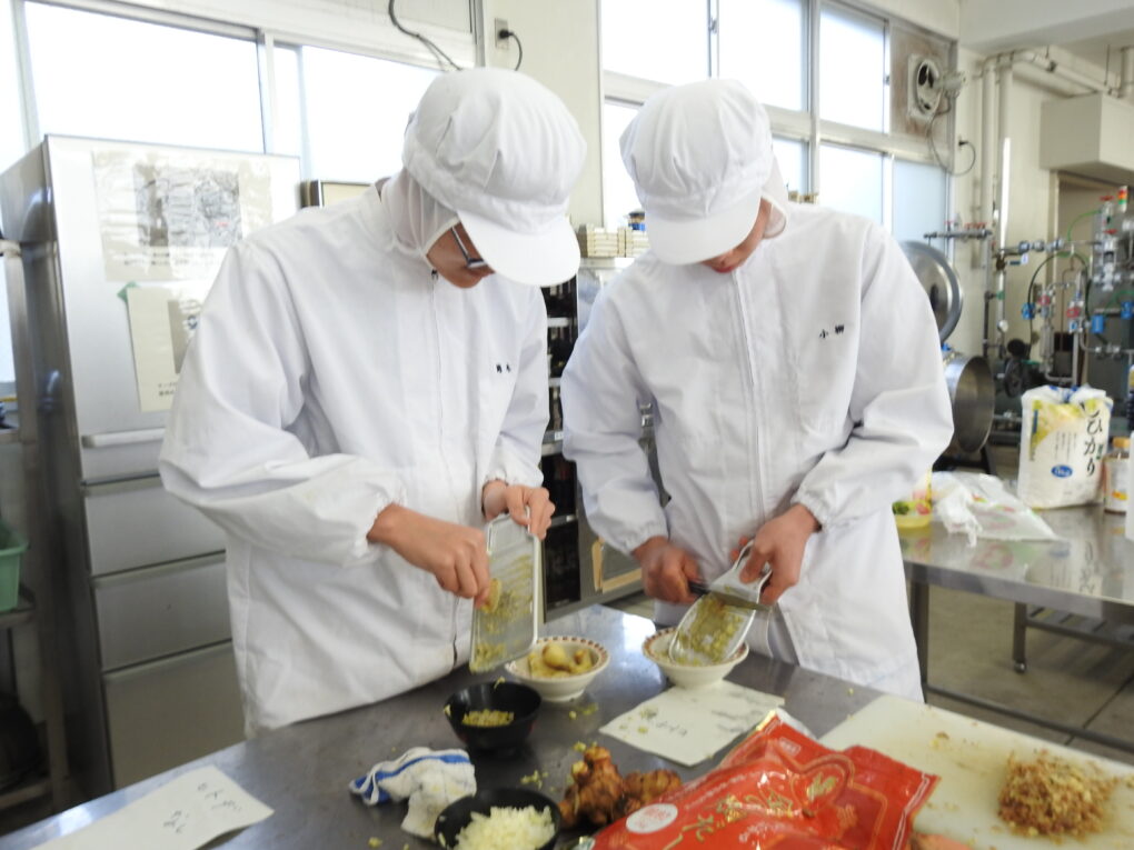 2月19日(木)、食品経済コースの「総合実習」において、天橋立生姜の加工品づくりに挑戦しました。