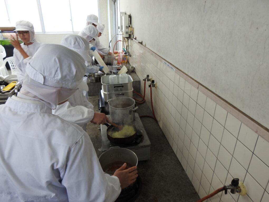 地元の特産品を目標に生徒が「生姜のスープ」、「生姜の甘酢漬け」、「生姜のつくだ煮」を試作しました。