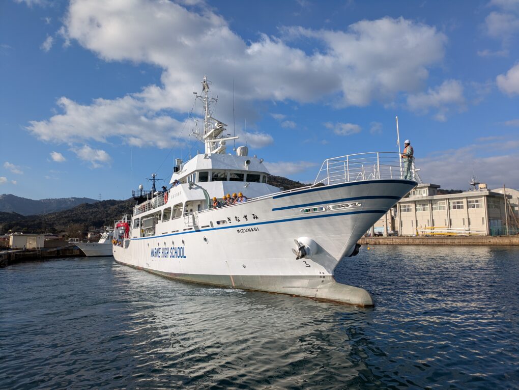 実習船「みずなぎ」は、3月初めから末まで、ドックのため学校岸壁を離れることになります。