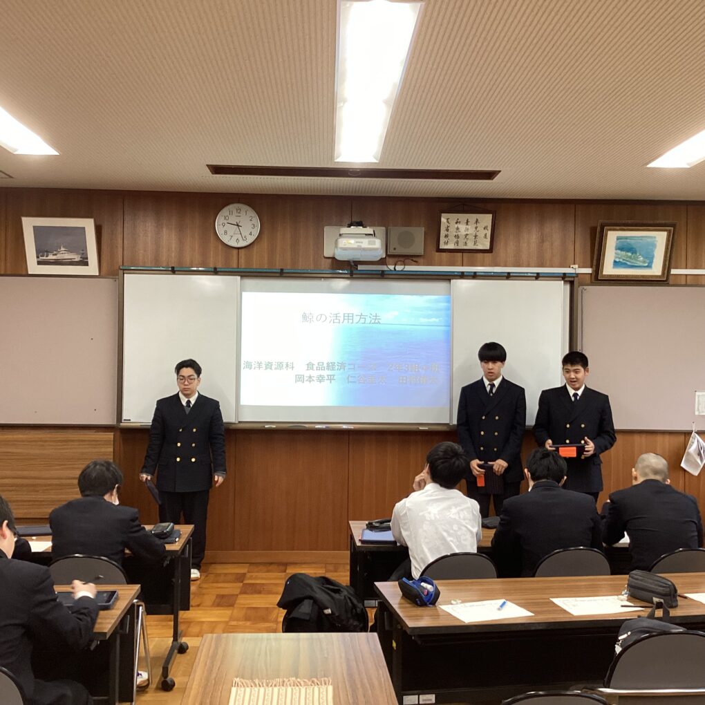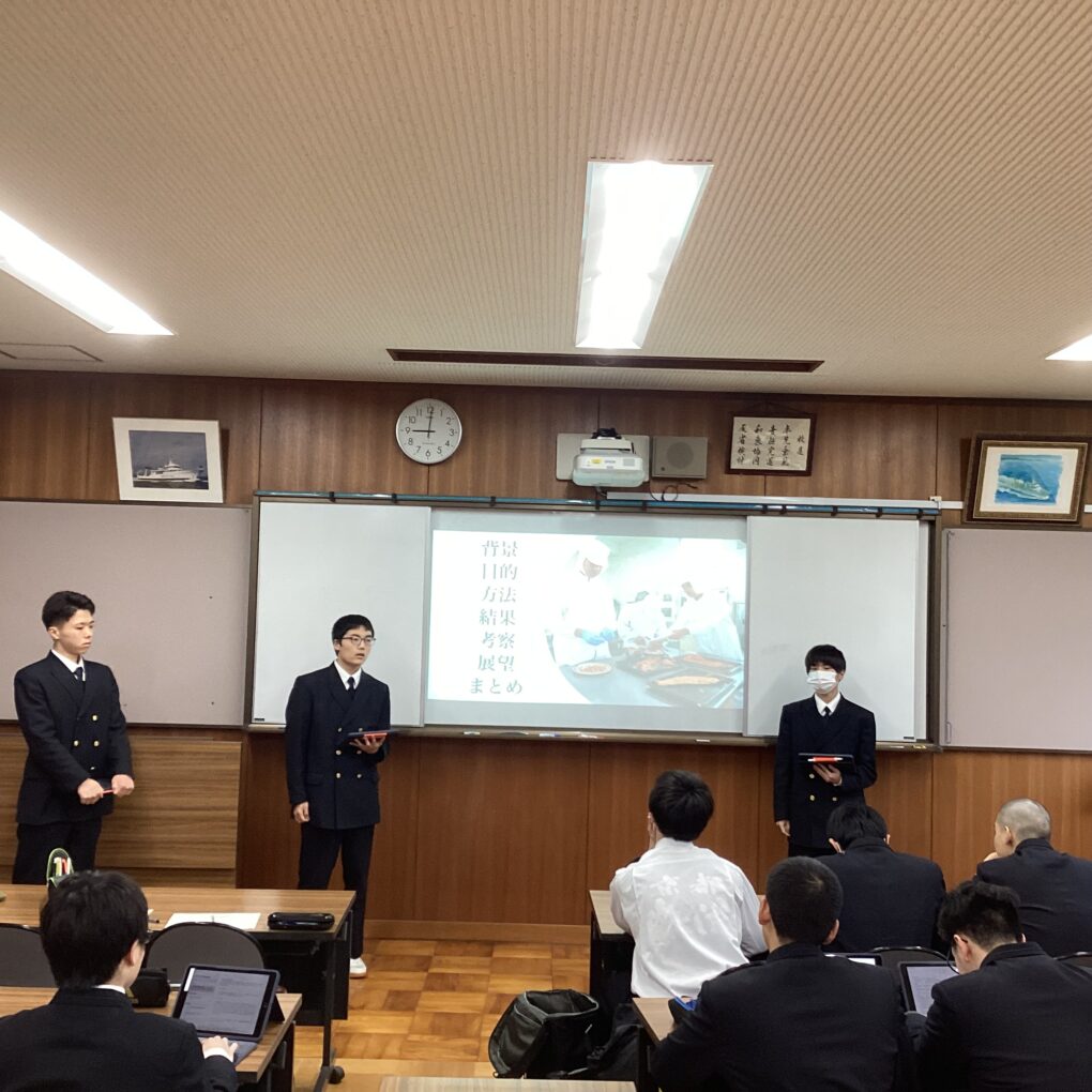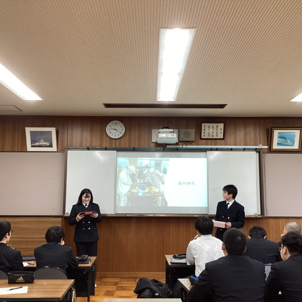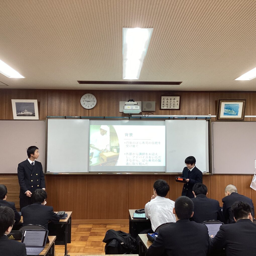【食品経済コース】2年生学習成果発表会 コース内選考 食品経済コース新巻鮭製造実習 2026.03.09 2月26日(木)、食品経済コース2年生の「総合実習」において、3月に実施される学習成果発表会のコース内選考を行いました。 1年間の学びをまとめ、5グループに分かれ、発表しました。 新巻鮭製造実習 レストラン 丹後のばら寿司知名度UP 発想を形に~創作寿司製造実習~ 鯨の活用方法 Post Views: 18