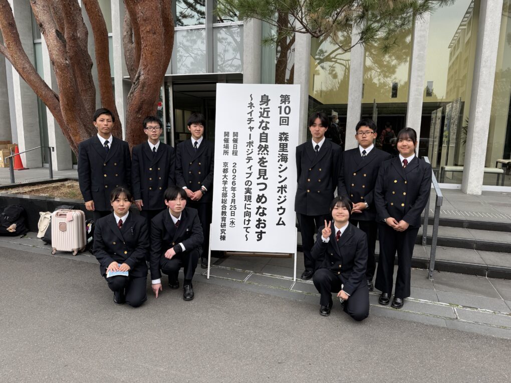 3月25日(水)、京都大学フィールド科学教育研究センター及び公益財団法人イオン環境財団主催による「第10回 森里海シンポジウム(身近な自然を見つめなおす)」が京都大学 北部総合教育研究棟 益川ホールで開催され、2年生から海洋科学科に所属する1年生も含め海洋科学科の代表9名が参加しました。