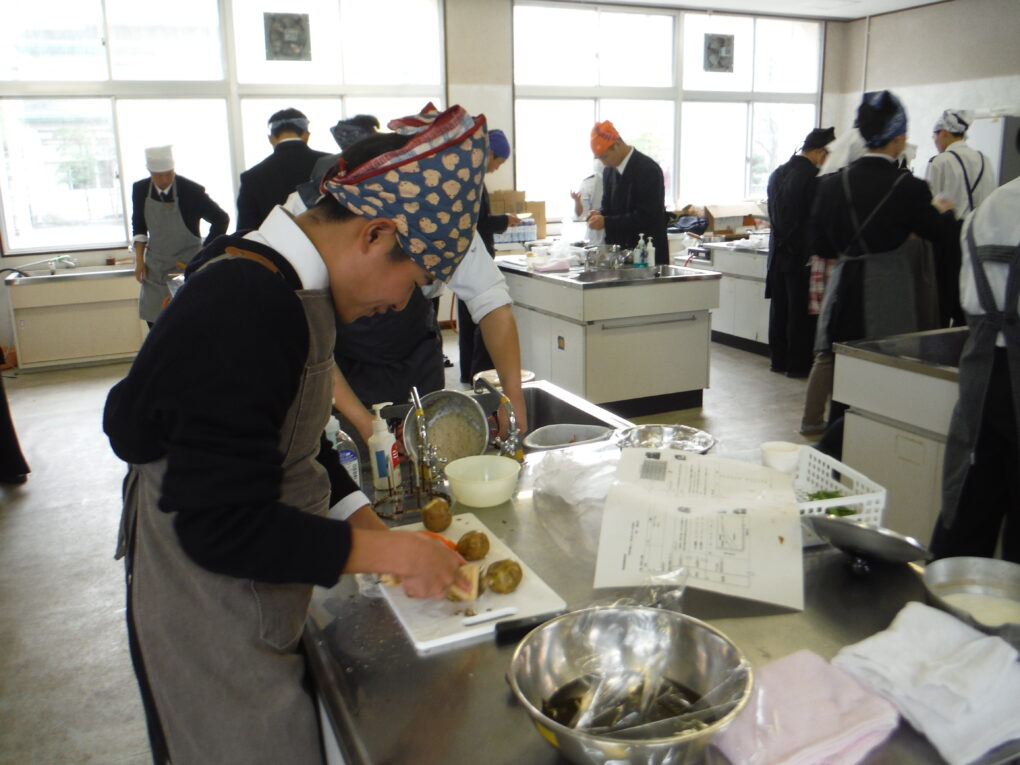 先生の指導に従い衛生面での注意を払いながら、準備された材料や調味料を、指示された方法で調理し、試食しました。