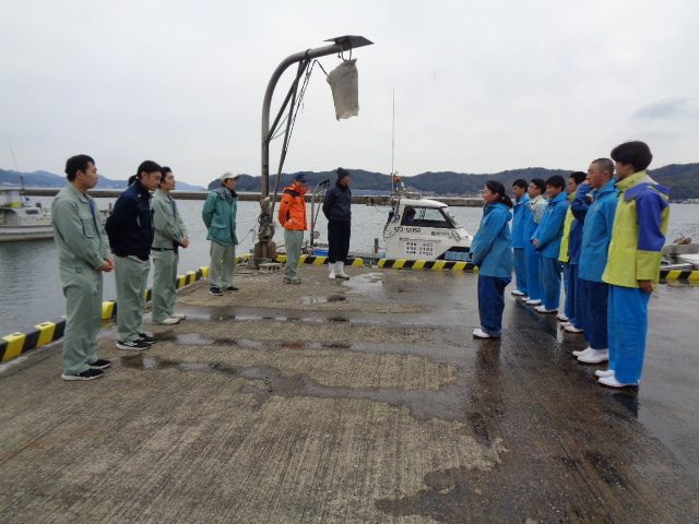 海洋科学科 3月18日(水)、宮津なまこ組合、京都府漁協及び京都府水産事務所様が、宮津湾のマナマコ生息域調査を実施され、1年生も含めた海洋科学科の希望生徒8名が調査の補助員として参加しました。